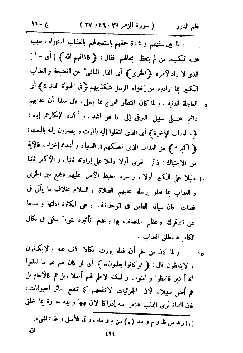 كتاب نظم الدرر في تناسب الآيات والسور (اسم الجزء: 16)