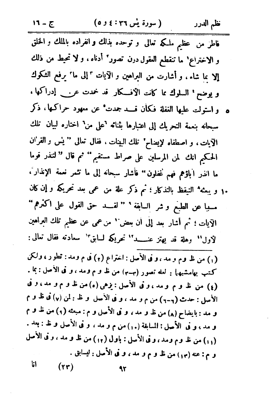 فاطر من عظيم ملكه تعالى وتوحده بذلك وانفراده بذلك بالملك والخلق والاختراع ما تنقطع العقول دون تصور أدناه، ولا تحيط من ذلك إلا بما شاء، وأشارت من البراهين والآيات إلى ما يرفع الشكوك ويوضح السلوك مما كانت الأفكار قد خمدت عن إدركها، واستولت عليها الغفلة فكانت قد جمدت عن معهود حراكها، ذكر سبحانه بنعمة التحريك إلى اعتبارها بثنائه على من اختاره لبيان تلك الآيات، واصطفاه لإيضاح تلك البينات، فقال تعالى {يس والقرآن الحكيم إنك لمن المرسلين على صراط مستقيم} ثم قال {لتنذر قوماً ما أنذر آباؤهم فهو غافلون} فأشار سبحانه إلى ما تثمر نعمة الإنذار، ويبعثه التيقظ بالتذكار؛ ثم ذكر علة من عمي بعد تحريكه وإن كان مسبباً عن الطبع وشر السابقة {لقد حق القول على أكثرهم} الآيات؛ ثم أشار بعد إلى بعض من عمي عن عظيم تلك البراهين لأول وهلة قد يهتز عند تحريكه لسابق سعادته فقال تعالى:
