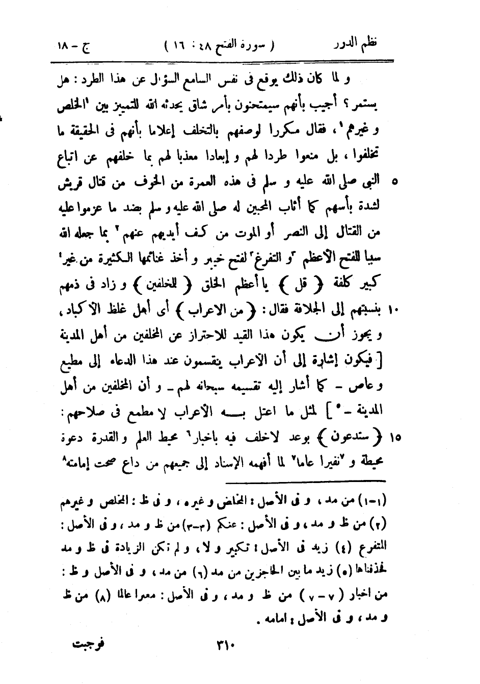 وعلماً في الإخبار بلعنهم وإبارتهم، وأن فتح خيبر مختص بأهل الحديبية، لا يشركهم فيه إلا من وافقهم في النية والهجرة، ليتوصلوا بذلك إلى تشكيك أهل الإسلام فيه، والمراد أن فعلهم فعل من يريد ذلك، ولا يبعد أن يكونوا صنفين: منهم من يريد ذلك، ومنهم من لم يرده ولكن فعل من يريده.