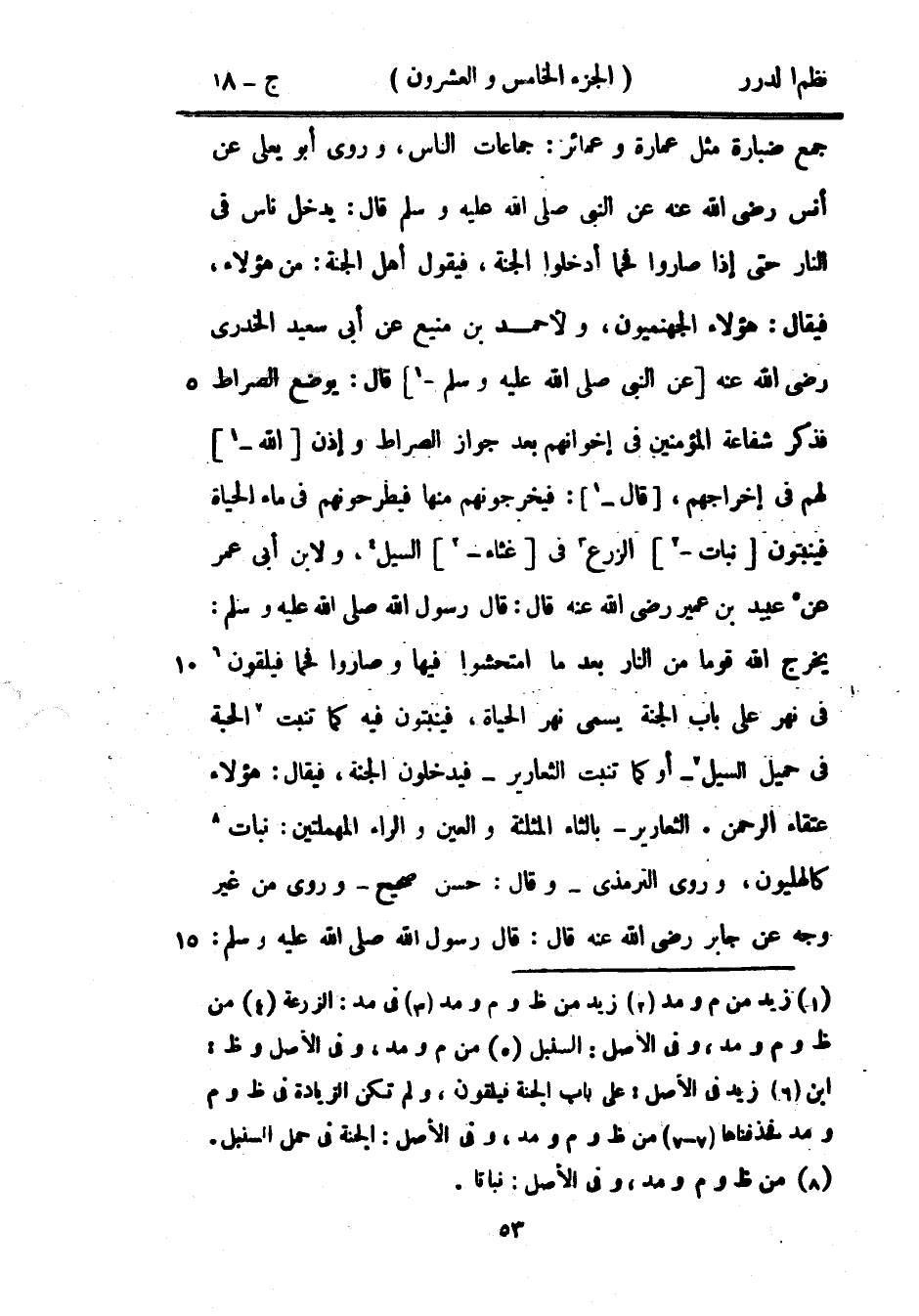 جمع ضبارة مثل عمارة عمائر: جماعات الناس، وروى أبو يعلى عن أنس رضي الله عنه عن النبي صَلَّى اللهُ عَلَيْهِ وَسَلَّمَ قال: «يدخل ناس في النار حتى إذا صاروا فحماً أدخلوا الجنة، فيقول أهل الجنة: من هؤلاء؟ ، فيقال: هؤلاء الجهنميون» ، ولأحمد بن منيع عن أبي سعيد الخدري رضي الله عنه عن النبي صَلَّى اللهُ عَلَيْهِ وَسَلَّمَ قال: «يوضع الصراط» فذكر شفاعة المؤمنين في إخوانهم بعد جواز الصراط وإذن الله لهم في إخراجهم، قال: «فيخرجونهم منها فيطرحونهم في ماء الحياة فينبتون نبات الزرع في غثاء السيل» ، ولابن أبي عمر عن عبيد بن عمير رضي الله عنه قال: قال رسول الله صَلَّى اللهُ عَلَيْهِ وَسَلَّمَ: «يخرج الله قوماً من النار بعد ما امتحشوا فيها وصاروا فحماً فيلقون في نهر على باب الجنة يسمى نهر الحياة، فينبتون فيه كما تنبت الحبة في حميل السيل - أو كما تنبت الثعارير - فيدخلون الجنة، فيقال: هؤلاء عتقاء الرحمن» الثعارير - بالثاء المثلثة والعين والراء المهملتين: نبات كالهليون، وروى الترمذي - وقال: حسن صحيح - وروي من غير وجه عن جابر رضي الله عنه قال: قال رسول الله صَلَّى اللهُ عَلَيْهِ وَسَلَّمَ: