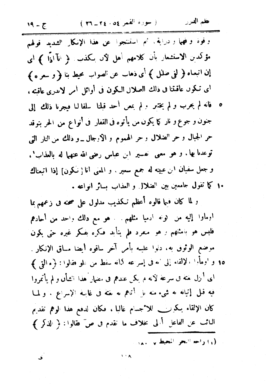 وقوة وفهماً ودراية، ثم استنتجوا عن هذا الإنكار الشديد قولهم مؤكدين الاستشعار بأن كلامهم أهل لأن يكذب: {إنا إذاً} أي إن اتبعناه {لفي ضلال} أي ذهاب عن الصواب محيط بنا {وسعر *} أي تكون عاقبتنا في ذلك الضلال الكون في أوائل أمر لا ندري عاقبته، فإنه لم يجرب ولم يختبر ولم يمعن أحد قبلنا سلفاً لنا فيجرنا ذلك إلى جنون وجوع ونار كما يكون من يأتوه في القفار في أنواع من الحر بتوقد حر الجبال وحر الضلال وحر الهموم والأوجال - وذلك من النار التي توعدنا بها، وهو معنى تفسير ابن عباس رضي الله عنهما له بالعذاب، وجعل سفيان بن عيينه له جمع سعير، والمعنى إنا نكون إذا اتبعناك كما تقول جامعين بين الضلال والعذاب بسائر أنواعه.