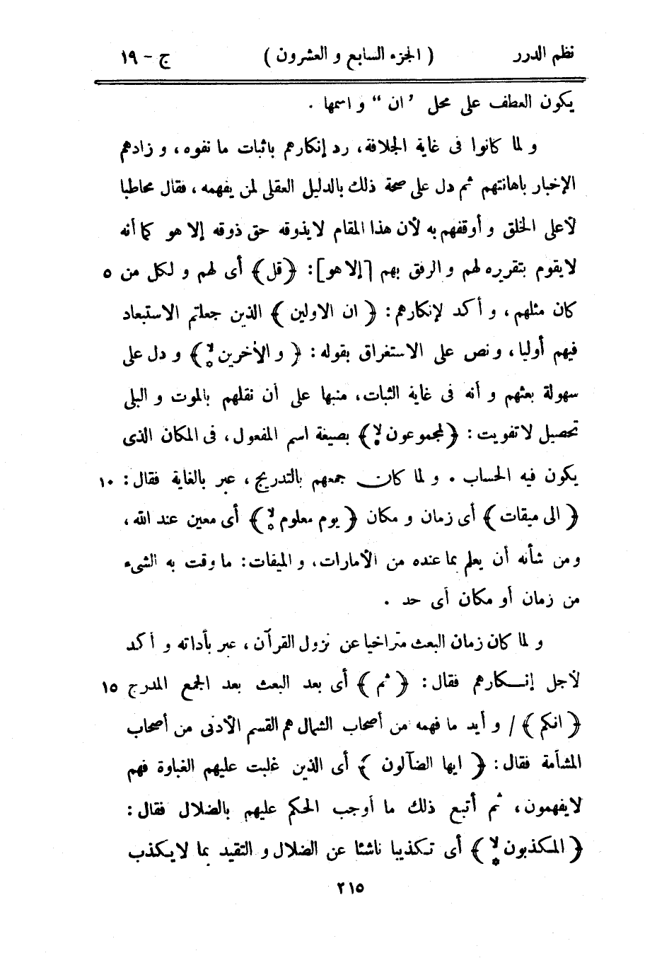 كتاب نظم الدرر في تناسب الآيات والسور (اسم الجزء: 19)