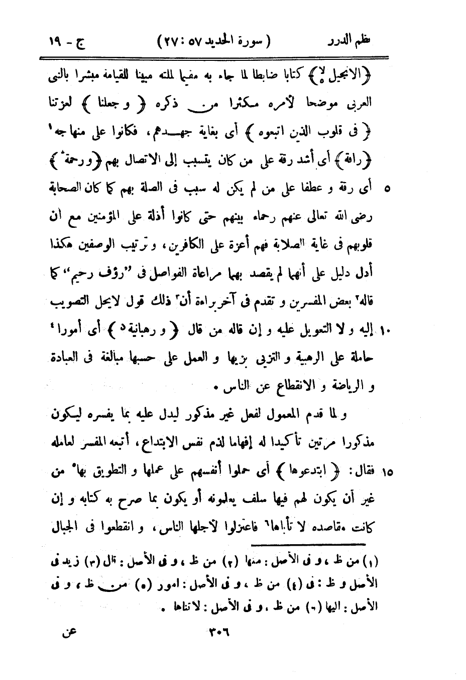 {الإنجيل *} كتاباً ضابطاً لما جاء به مقيماً لملته مبيناً للقيامة مبشراً بالنبي العربي موضحاً لأمره مكثراً من ذكره {وجعلنا} لعزتنا {في قلوب الذين اتبعوه} أي بغاية جهدهم، فكانوا على مناهجه {رأفة} أي أشد رقة على من كان يتسبب إلى الاتصال بهم {ورحمة} أي رقة وعطفاً من لم يكن له سبب في الصلة بهم كما كان الصحابة رضي الله تعالى عنهم رحماء بينهم حتى كانوا أذلة على المؤمنين مع أن قلوبهم في غاية الصلابة فهم أعزة على الكافرين، وترتيب الوصفين هكذا أدل دليل على أنهما لم يقصد بهما مراعاة الفواصل في {رؤف رحيم} كما قاله بعض المفسرين وتقدم في آخر براءة أن ذلك قول لا يحل التصويب إليه ولا التعويل عليه وإن قاله من قال {ورهبانية} أي أموراً حاملة على الرهبية والتزيي بزيها والعمل على حسبها مبالغة في العبادة والرياضة والانقطاع عن الناس.