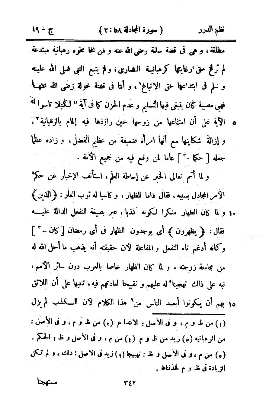 سلمة رضي الله عنه ومن نحا نحوه رهبانية مبتدعة لم ترع حق رعايتها كرهبانية النصارى، ولم يتبع النبي صَلَّى اللهُ عَلَيْهِ وَسَلَّمَ في ابتداعها حق الاتباع، وأما في قصة خولة رضي الله عنها فهي مصيبة كأن ينبغي فيها التسليم وعدم الحزم كما في آية {لكيلا تأسوا} [الحديد: 23] الآية على أن امتناعها من زوجها حين راودها فيه إلمام بالرهبانية، وإزالة شكايتها مع أنها امرأة ضعيفة من عظيم الفضل، وزاده عظماً جعله حكماً عاماً لمن وقع فيه من جميع الأمة.
