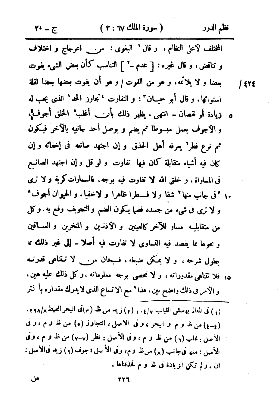 المختلف لأعلى النظام، وقال البغوي: من اعوجاج واختلاف وتناقض، وقال غيره: عدم التناسب كأن بعض الشيء يفوت بعضاً ولا يلائمه، وهو من الفوت وهو أن يفوت بعضها بعضاً لقلة استوائها، وقال أبو حيان: والتفاوت تجاوز الحد الذي يجب له زيادة أو نقصان - انتهى.