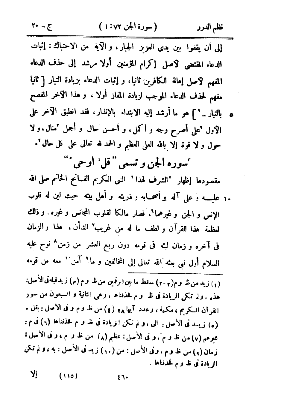 مقصودها إظهار الشرف لهذا النبي الكريم الفاتح (صَلَّى اللهُ عَلَيْهِ وَسَلَّمَ) وعلى أنه وأصحابه وذريته، أهل بيته حيث لين له قلوب الإنس والجن وغيرهما، فصار مالكا لقلوب المجانس وغيره، وذلك لعظمة هذا القرآ، ولطف ما له من غريب الشأن، هذا والزمان في آخره وزمان لبثه في قومه دون ربع العشر من زمن نوح عليه السلام أول نبي بعثه الله تعالى إلى المخالفين وما آمن معه من قومه