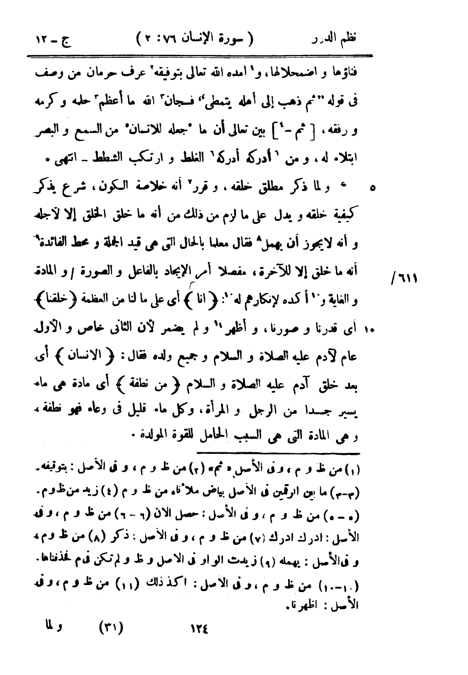 ولما ذكر مطلق خلقه، وقرر أنه خلاصة الكون، شرع يذكر كيفية خلقه ويدل على ما لزم من ذلك من أنه ما خلق الخلق إلا لأجله وأنه لا يجوز أن يهمل فقال معلماً بالحال التي هي قيد الجملة ومحط الفائدة أنه ما خلق إلا للآخرة، مفصلاً أمر الإيجاد بالفاعل والصورة والمادة والغاية وأكده لإنكارهم له: {إنا} أي على ما لنا من العظمة {خلقنا} أي قدرنا وصورنا، وأظهر ولم يضمر لأن الثاني خاص والأول عام لآدم عليه الصلاة والسلام وجميع ولده فقال: {الإنسان} أي بعد خلق آدم عليه الصلاة والسلام {من نطفة} أي مادة هي ماء جداً من الرجل والمرأة، وكل ماء قليل في وعاء فهو نطفة وهي المادة التي هي السبب الحامل للقوة المولدة.