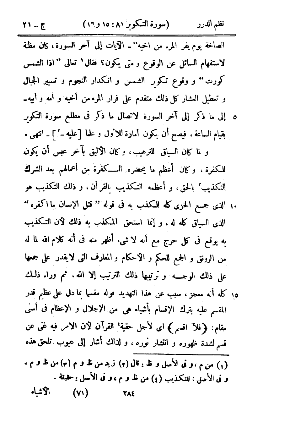 كتاب نظم الدرر في تناسب الآيات والسور (اسم الجزء: 21)