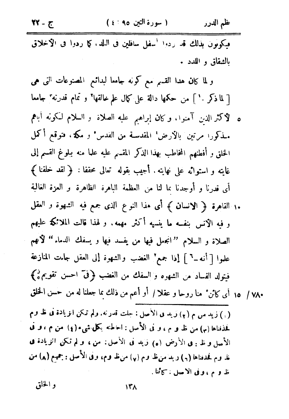 {أتجعل فيها من يفسد فيها ويسفك الدماء} [البقرة: 30] لأنهم علموا أنه إذا جمع الغضب والشهوة إلى العقل جاءت المنازعة فيتولد الفساد من الشهوة والسفك من الغضب {في أحسن تقويم *} أي كائن منا روحاً وعقلاً أو أعم من ذلك بما جعلنا له من حسن الخلق