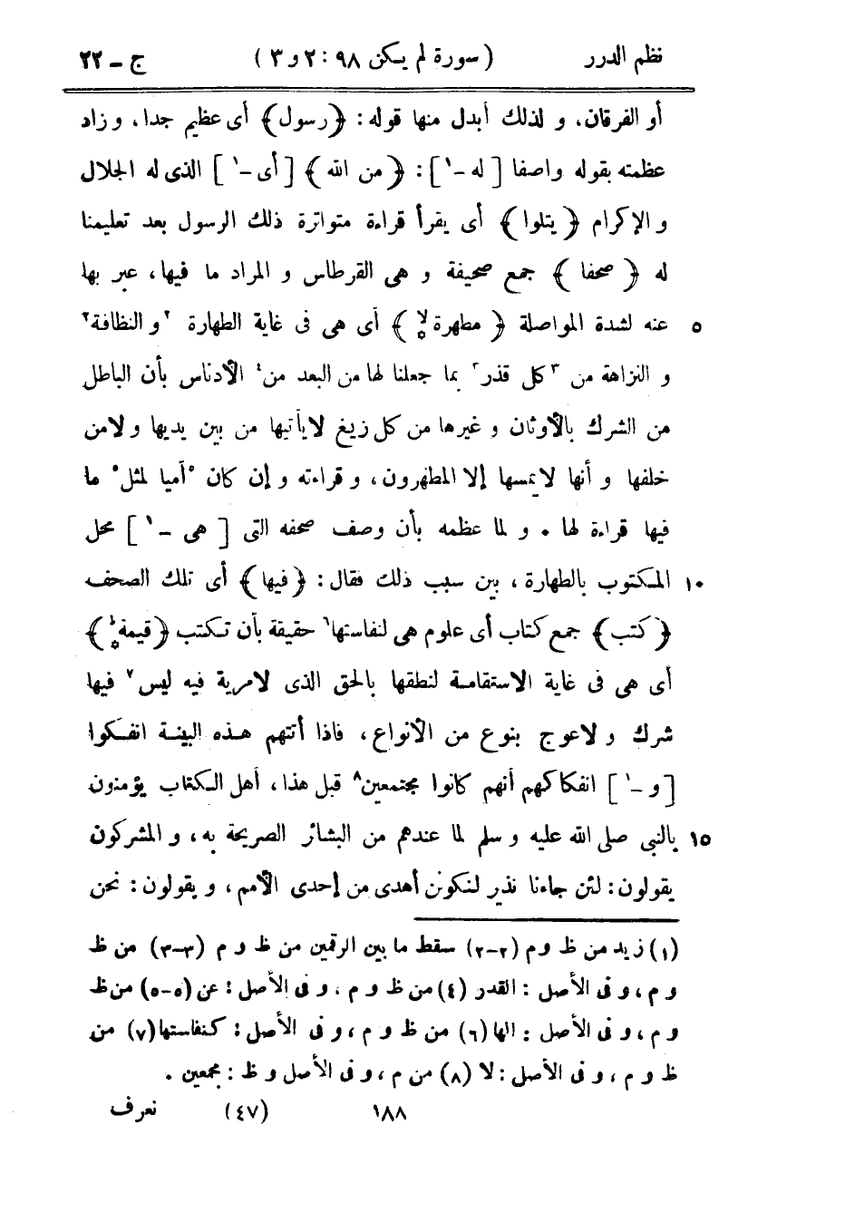 كتاب نظم الدرر في تناسب الآيات والسور (اسم الجزء: 22)