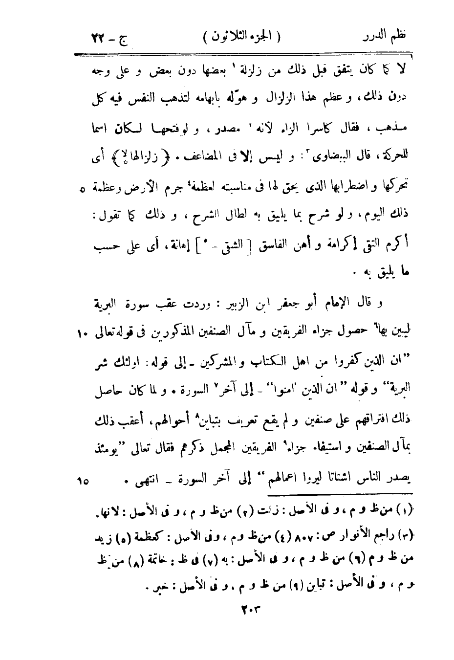 كتاب نظم الدرر في تناسب الآيات والسور (اسم الجزء: 22)