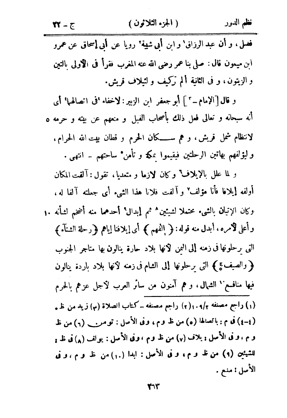 وقال الإمام أبو جعفر بن الزبير: لاخفاء في اتصالهما أي أنه سبحانه وتعالى فعل ذلك بأصحاب الفيل ومنعهم عن بيته وحرمه لانتظام شمل قريش، وهم سكان الحرم وقطان بيت الله الحرام، وليؤلفهم بهاتين الرحلتين فيقيموا بمكة وتأمن ساحتهم - انتهى.
