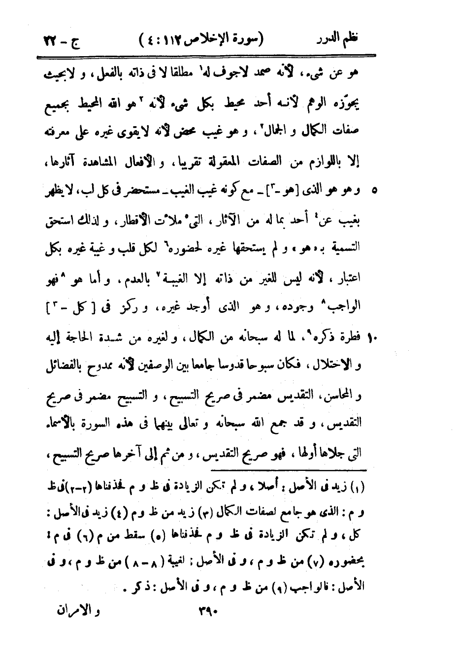 هو عن شيء، لأنه صمد لا جوف له مطلقاً لا في ذاته بالفعل، ولا بحيث يجوّزه الوهم لأنه أحد محيط بكل شيء لأنه هو الله المحيط بجميع صفات الكمال والجمال، وهو غيب محض لأنه لا يقوى غيره على معرفته إلا باللوازم من الصفات المعقولة تقريباً، والأفعال المشاهدة آثارها، وهو هو الذي هو - مع كونه غيب الغيب - مستحضر في كل لب، لا يظهر بغيب عن أحد بما له من الآثار، التي ملأت الأقطار، ولذلك استحق التسمية ب «هو» ولم يستحقها غيره لحضوره لكل قلب وغيبة غيره بكل اعتبار، لأنه ليس للغير من ذاته إلا الغيبة بالعدم، وأما هو فهو الواجب وجوده، وهو الذي أوجد غيره، وركز في كل قطرة ذكره، لما له سبحانه من الكمال، ولغيره من شدة الحاجة إليه والاحتلال، فكان سبوحاً قدوساً جامعاً بين الوصفين لأنه ممدوح بالفضائل والمحاسن، التقديس مضمر في صريح التسبيح، والتسبيح مضمر في صريح التقديس، وقد جمع الله سبحانه وتعالى بينهما في هذه السورة بالأسماء التي جلاها أولها، فهو صريح التقديس، ومن ثم إلى آخرها صريح التسبيح،