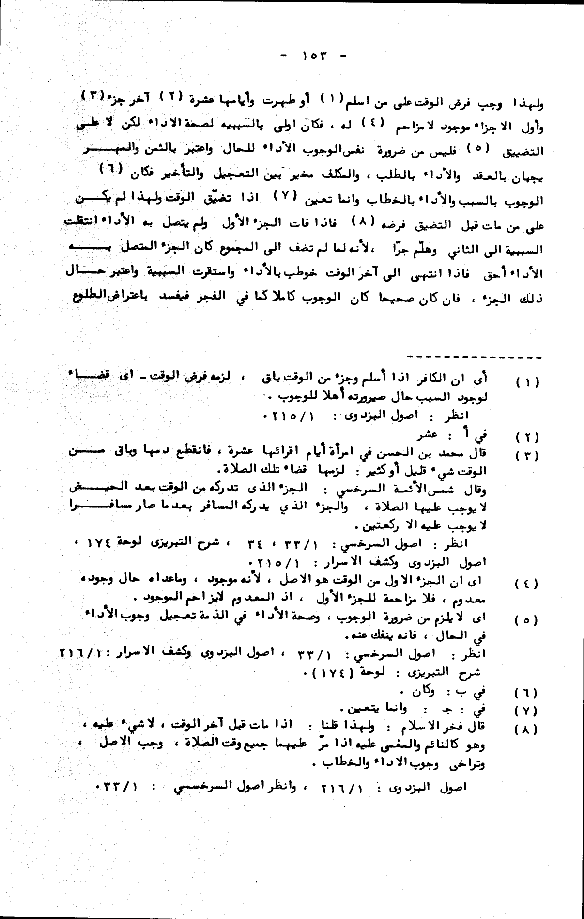 ولهذا وجب فرض الوقت على من أسلم أو طهرت وأيامها عشرة آخر جزء وأول الأجزاء موجود لا مزاح له، فكان أولى بالسببية لصحة الأداء لكن لا على التضييق، فليس من ضرورة نفس الوجوب الأداء للحال واعتبر بالثمن والمهر يجبان بالعقد والأداء بالطلب، والمكلف مخير بين التعجيل والتأخير فكان الوجوب بالسبب والأداء بالخطاب وإنما تعين إذا تضيق الوقت، ولهذا لم يكن على من مات قبل التضيق فرضه فإذا فات الجزء الأول ولم يتصل به الأداء انتقلت السببية إلى الثاني وهلم جرا. لأنه لما تضف إلى المجموع كان الجزء المتصل به الأداء أحق فإذا انتهى إلى آخر الوقت خوطب بالأداء واستقرت السببية واعتبر حال ذلك الجزء، فإن كان صحيحا كان الوجوب كاملا كما في الفجر فيفسد باعتراض الطلوع