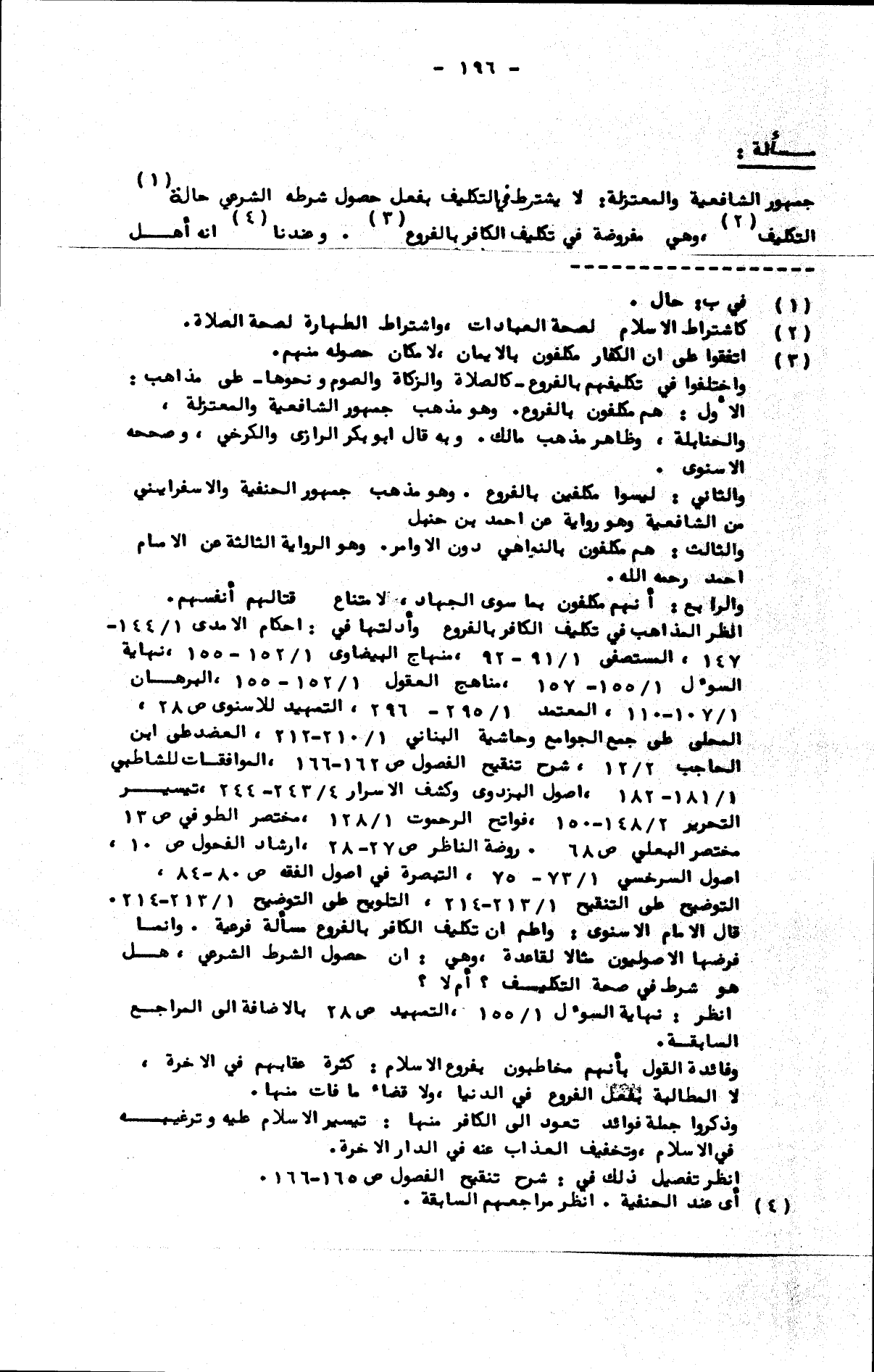 جمهورُ الشافعية والمعتزلة: لا يشترط في التكليف بفعلٍ حصولُ شرطه الشرعي حالةَ التكليف، وهي مفروضةٌ في تكليف الكافر بالفروع، وعندنا: أنه أهلٌ