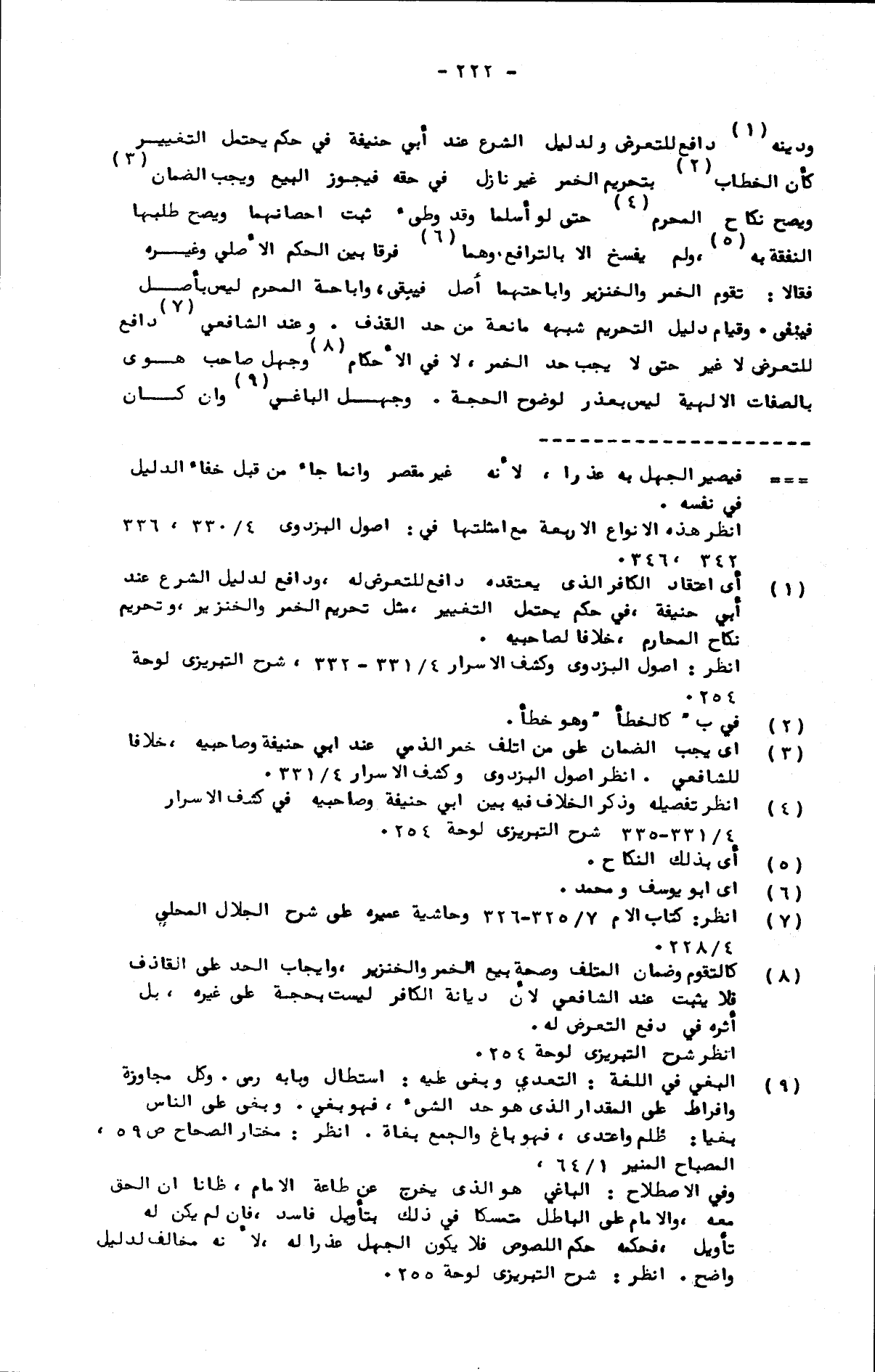 وقيامُ دليل التحريم شبهةٌ مانعة من حدِّ القذف، وعند الشافعي: دافع للتعرض لا غير، حتى لا يجب حدُّ الخمر لا في الأحكام