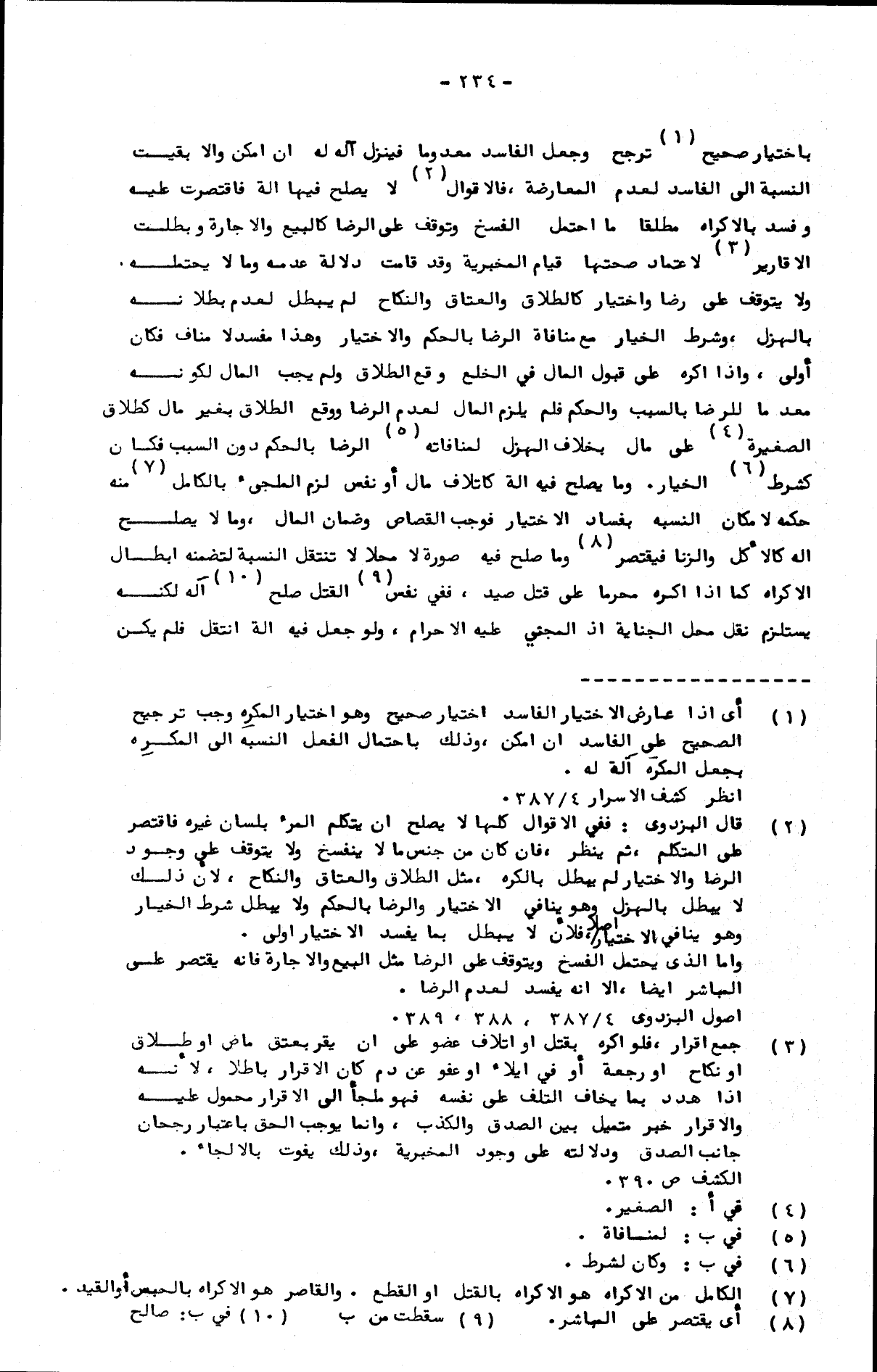 باختيارٍ صحيح ترجَّح وجُعل الفاسدُ معدومًا، فيُنزَّل آلةً له إن أمكن، وإلا بقيت النسبة إلى الفاسد؛ لعدم المعارضة، فالأقوالُ لا يصلح فيها آلةٌ فاقتصرت عليه، وفسد بالإكراه مطلقًا ما احتمل الفسخ، وتوقف على الرضا كالبيع والإجارة، وبطلت الأقاريرُ لاعتماد صحتها قيامَ (المخبر به) وقد قامت دلالةُ عدمه، وما لا يحتمله ولا يتوقفُ على رضًا واختيارٍ -كالطلاق والعتاق والنكاح- لم يبطل؛ لعدم بطلانه بالهزل وشرط الخيار مع منافاة الرضا بالحكم والاختيار، وهذا مفسدٌ لا منافٍ فكان أولى، وإذا أُكره على قَبول المال في الخلع وقع الطلاق ولم يجب المالُ لكونه معدما للرضا بالسبب والحكم، فلم يلزم المال لعدم الرضا، ووقع الطلاقُ بغير مال كطلاق الصغير على مال، بخلاف الهزل؛ لمنافاته الرضا بالحكم دون التسبب فكان كشرط الخيار