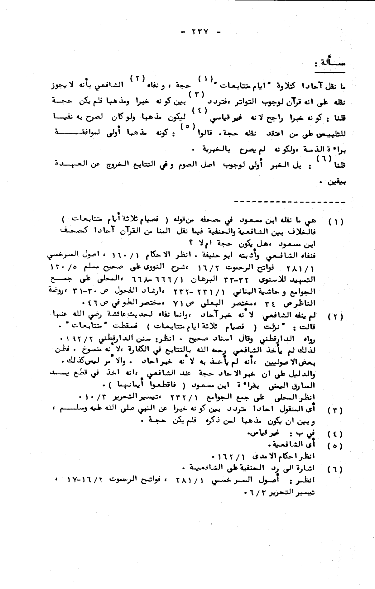 ما نقل آحادا كتلاوة أيام متتابعات حجة، ونفاه الشافعي بأنه لا يجوز نقله على أنه قرآن لوجوب التواتر، فتردد بين كونه خبرا ومذهبا فلم يكن حجة، قلنا: كونه خبرا راجح لأنه غير قياسي ليكون مذهبا، ولو كان لصرح به نفيا للتلبيس على من اعتقد نقله حجة. قالوا: كونه مذهبا أولى لموافقة براءة الذمة، ولكونه لم يصرح بالخبرية.
