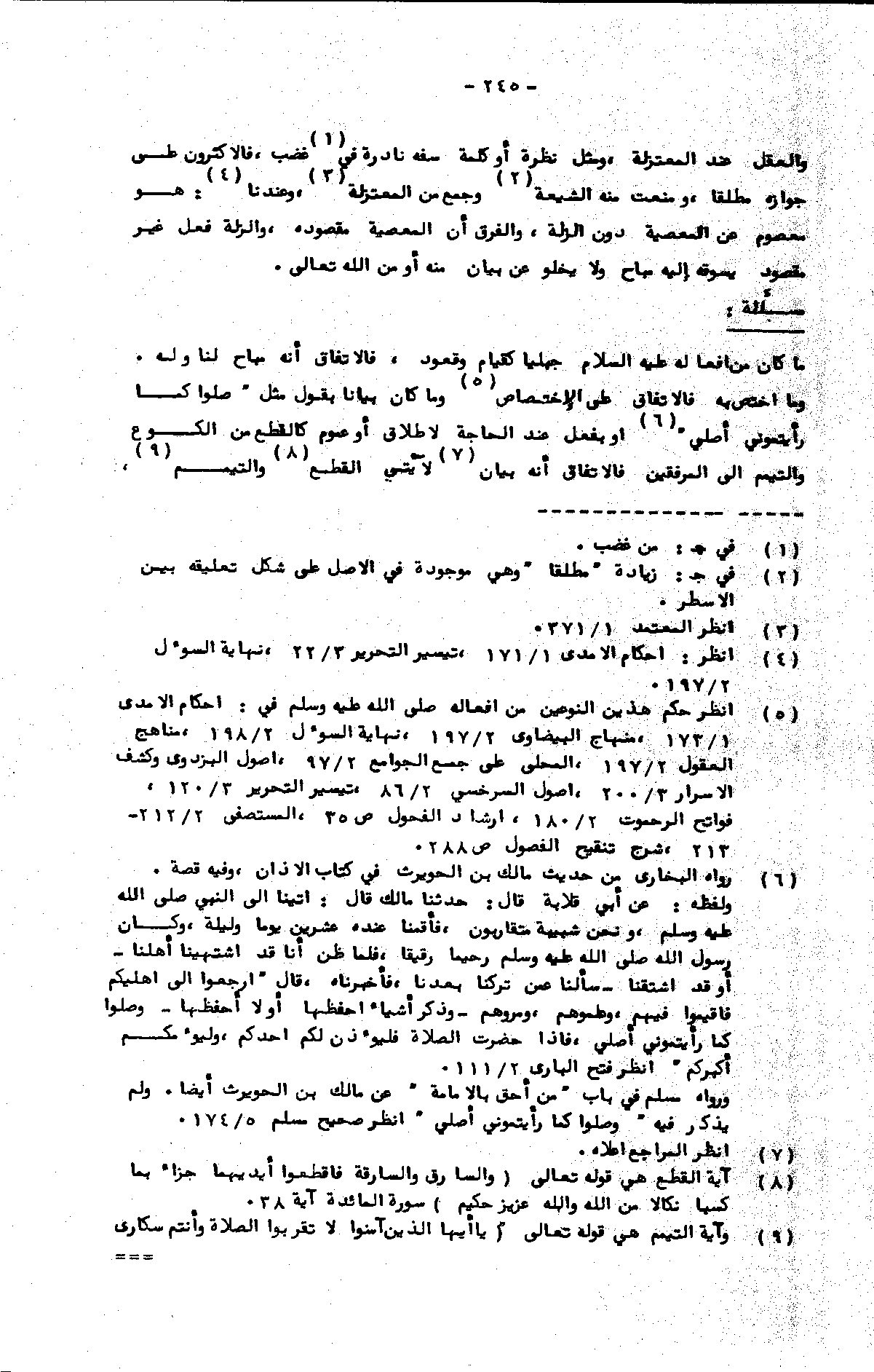 والعقل عند المعتزلة، ومثل نظرة أو كلمة سفه نادرة في غضب، فالأكثرون على جوازه مطلقا، ومنعت منه الشيعة وجمع من المعتزلة، وعندنا: هو معصوم عن المعصية دون الزلة، والفرق أن المعصية مقصودة، والزلة فعل غير مقصود يسوقه إليه مباح ولا يخلو عن بيان منه أو من الله تعالى.
