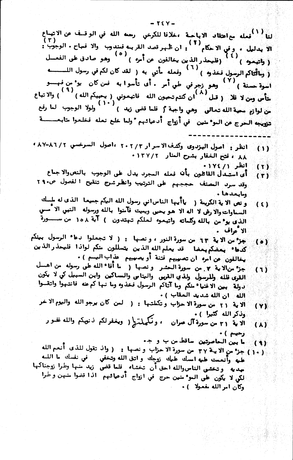 لنا فعله مع اعتقاد الإباحة، خلافا للكرخي رحمه الله في الوقف عن الاتباع إلا بدليل، وفي الأحكام: إن ظهر قصد القربة فمندوب وإلا فمباح. الوجوب: {واتبعوه} {فليحذر الذين يخالفون عن أمره} وهو صادق على الفعل {وما آتاكم الرسول فخذوه} وفعله مأتي به {لقد كان لكم في رسول الله أسوة حسنة} وهو زجر في طي أمر. أي تأسوا به فمن كان يؤمن فهو متأس ومن لا فلا {قل إن كنتم تحبون الله فاتبعوني يحببكم الله} والاتباع من لوازم محبة الله تعالى وهي واجبة {فلما قضى زيد} ولولا الوجوب لما رفع تزويجه الحرج عن المؤمنين في أزوواج أدعيائهم ولما خلع نعله فخلعوا متابعة