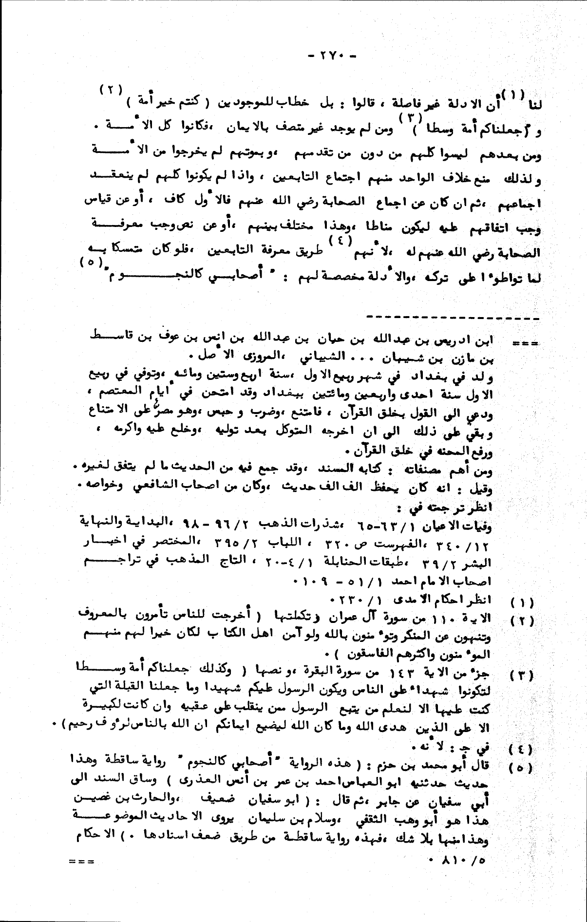 لنا: أن الأدلة غير فاصلة، قالوا: بل خطاب للموجودين {كنتم خير أمة} و {جعلناكم أمة وسطا} ومن لم يوجد غير متصف بالإيمان، فكانوا كل الأمة. ومن بعدهم ليسوا كلهم من دون من تقدمهم، وبموتهم لم يخرجوا من الأمة، ولذلك منع خلاف الواحد منهم اجتماع التابعين، وإذا لم يكونوا كلهم لم ينعقد إجماعهم، ثم إن كان عن إجماع الصحابة رضي الله عنهم فالأول كاف، أو عن قياس وجب اتفاقهم عليه ليكون مناطا، وهذا مختلف بينهم، أو عن نص وجب معرفة الصحابة رضي الله عنهم له؛ لأنهم طريق معرفة التابعين، فلو كان متمسكا به لما تواطؤوا على تركه، والأدلة مخصصة لهم: "أصحابي كالنجوم"