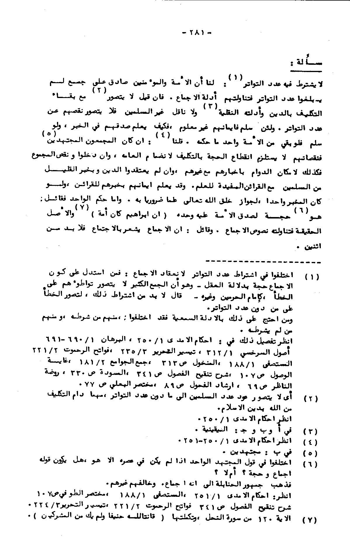 لا يشترط فيه عدد التواتر: لنا أن الأمة والمؤمنين صادق على جمع لم يبلغوا عدد التواتر فتناولتهم أدلة الإجماع. فإن قيل لا يتصور مع بقاء التكليف بالدين وأدلته النقلية ولا ناقل غير المسلمين فلا يتصور نقصهم عن عدد التواتر. ولئن سلم فإيمانهم غير معلوم، فكيف يعلم صدقهم في الغير، ولو سلم فلو بقي من الأمة واحد ما حكمه.