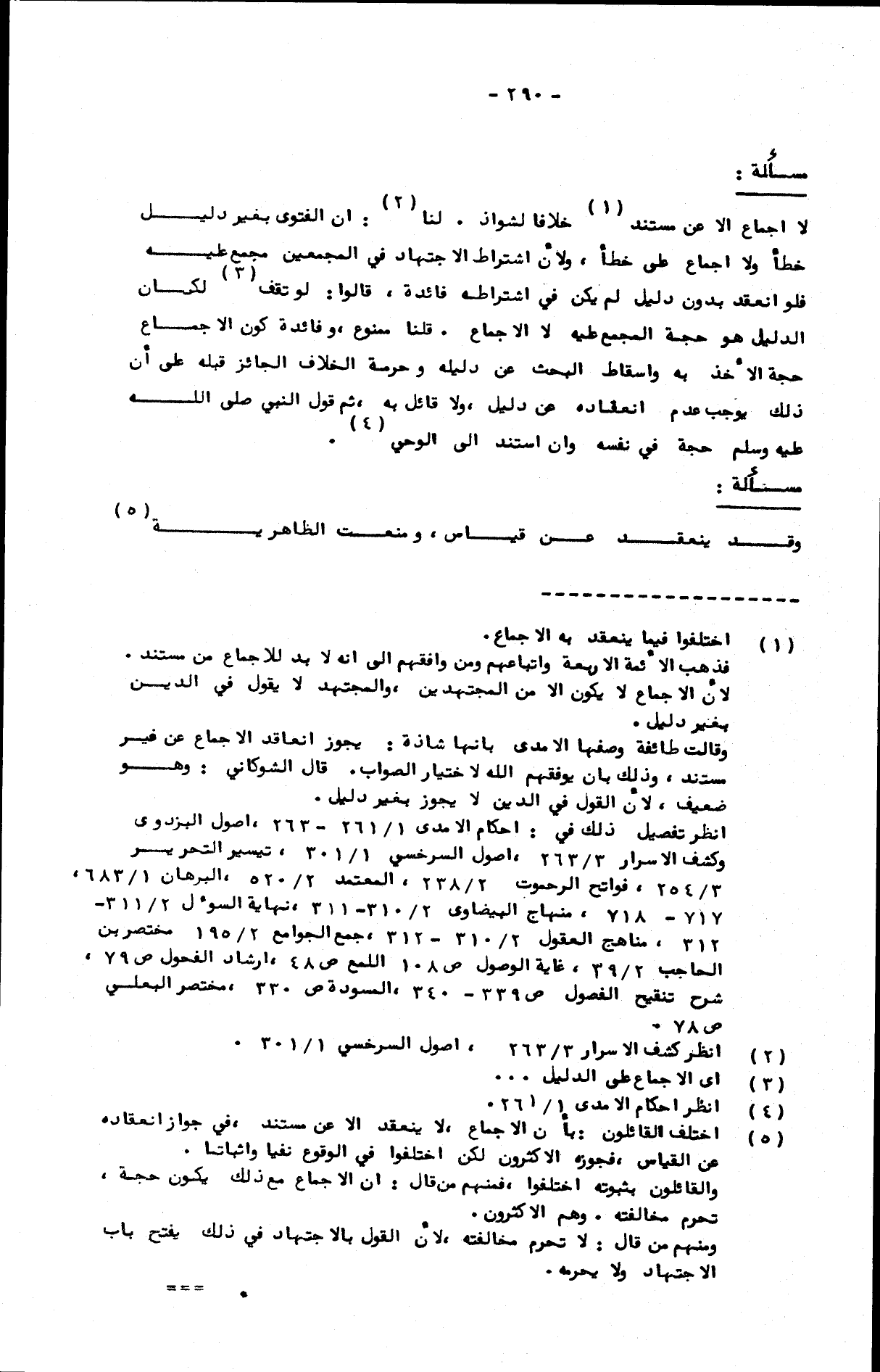 لا إجماع إلا عن مستند، خلافا لشواذ. لنا: أن الفتوى بغير دليل خطأ ولا إجماع على خطأ، ولأن اشتراط الاجتهاد في المجمعين مجمع عليه فلو انعقد بدون دليل لم يكن في اشتراطه فائدة، قالوا: لو تقف لكان الدليل هو حجة المجمع عليه لا الإجماع. قلنا: ممنوع، وفائدة كون الإجماع حجة الأخذ به وإسقاط البحث عن دليله وحرمة الخلاف الجائز قبله على أن ذلك يوجب عدم انعقاده عن دليل، ولا قائل به، ثم قول النبي صلى الله عليه وسلم حجة في نفسه وإن استند إلى الوحي.