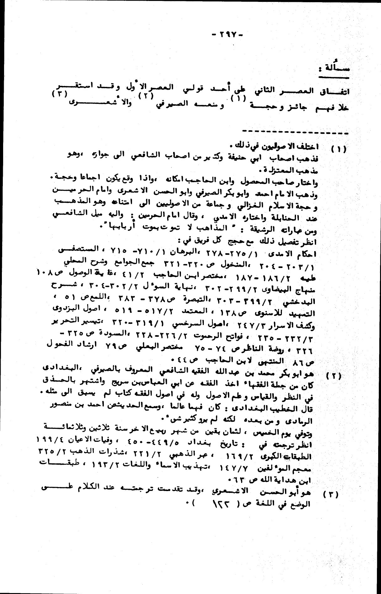 اتفاق العصر الثاني على أحد قولي العصر الأول وقد استقر خلافهم جائز وحجة ومنعه الصيرفي والأشعري