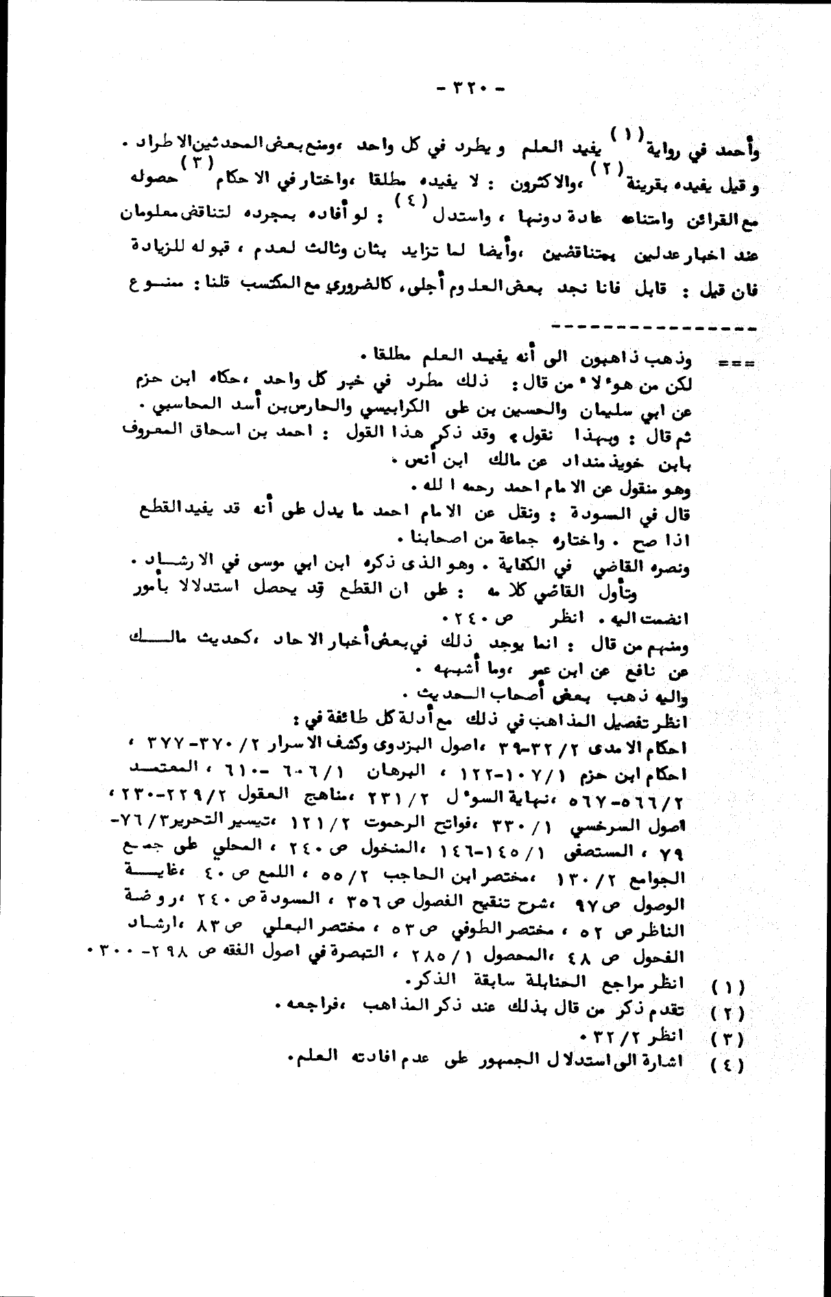 وأحمد في رواية يفيد العلم ويطرد في كل واحد، ومنع بعض المحدثين الاطراد. وقيل: يفيده بقرينة، والأكثرون: لا يفيده مطلقا، واختار في الأحكام حصوله مع القرائن وامتناعه عادة بدونها، واستدل: لو أفاده بمجرده لتناقض معلومان عند إخبار عدلين بمتناقضين، وأيضا لما تزايد بثان وثالث لعدم قبوله للزيادة، فإن قيل: قابل فإنا نجد بعض العلوم أجلى، كالضروري مع المكتسب. قلنا: ممنوع