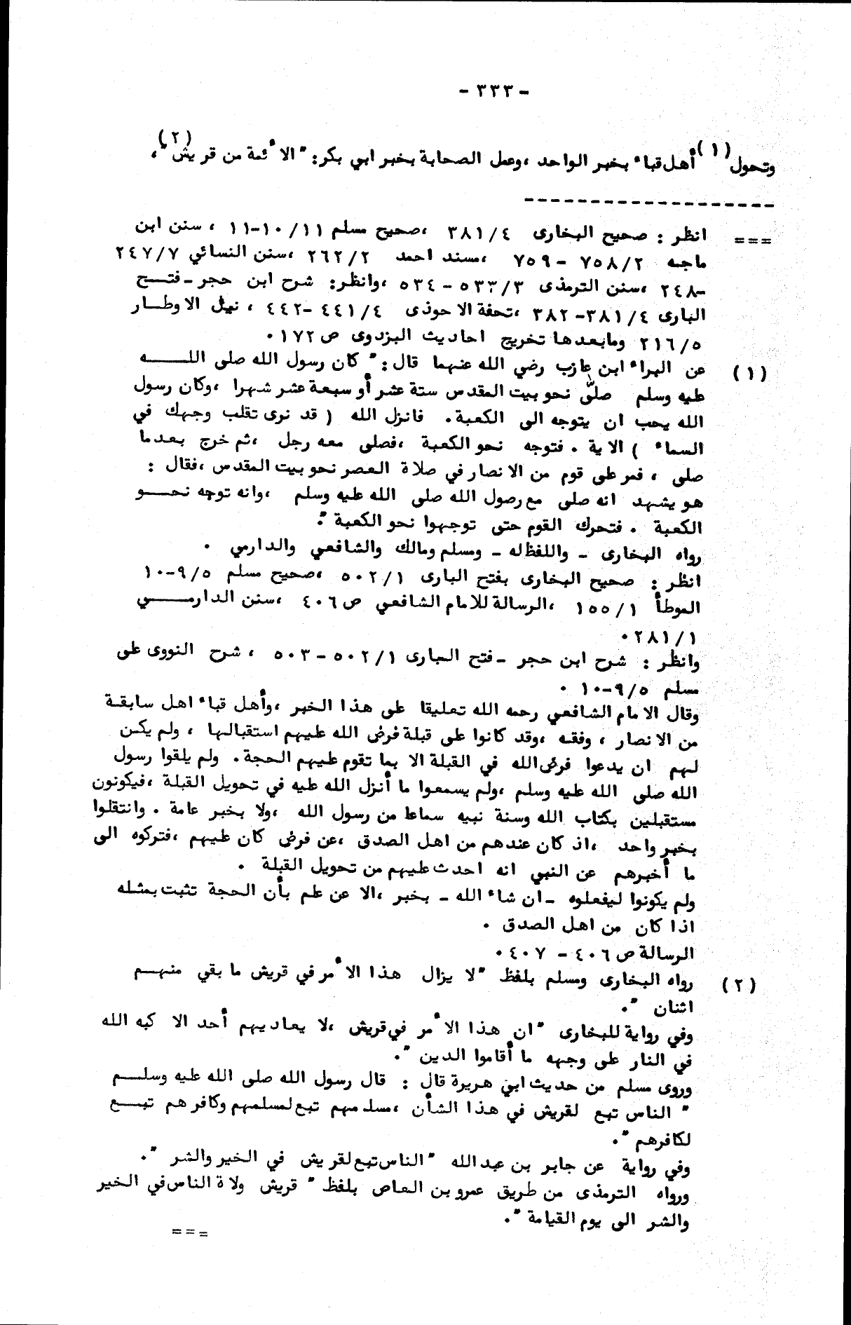 وتحول أهل قباء بخبر الواحد، وعمل الصحابة بخبر أبي بكر: الأئمة من قريش،