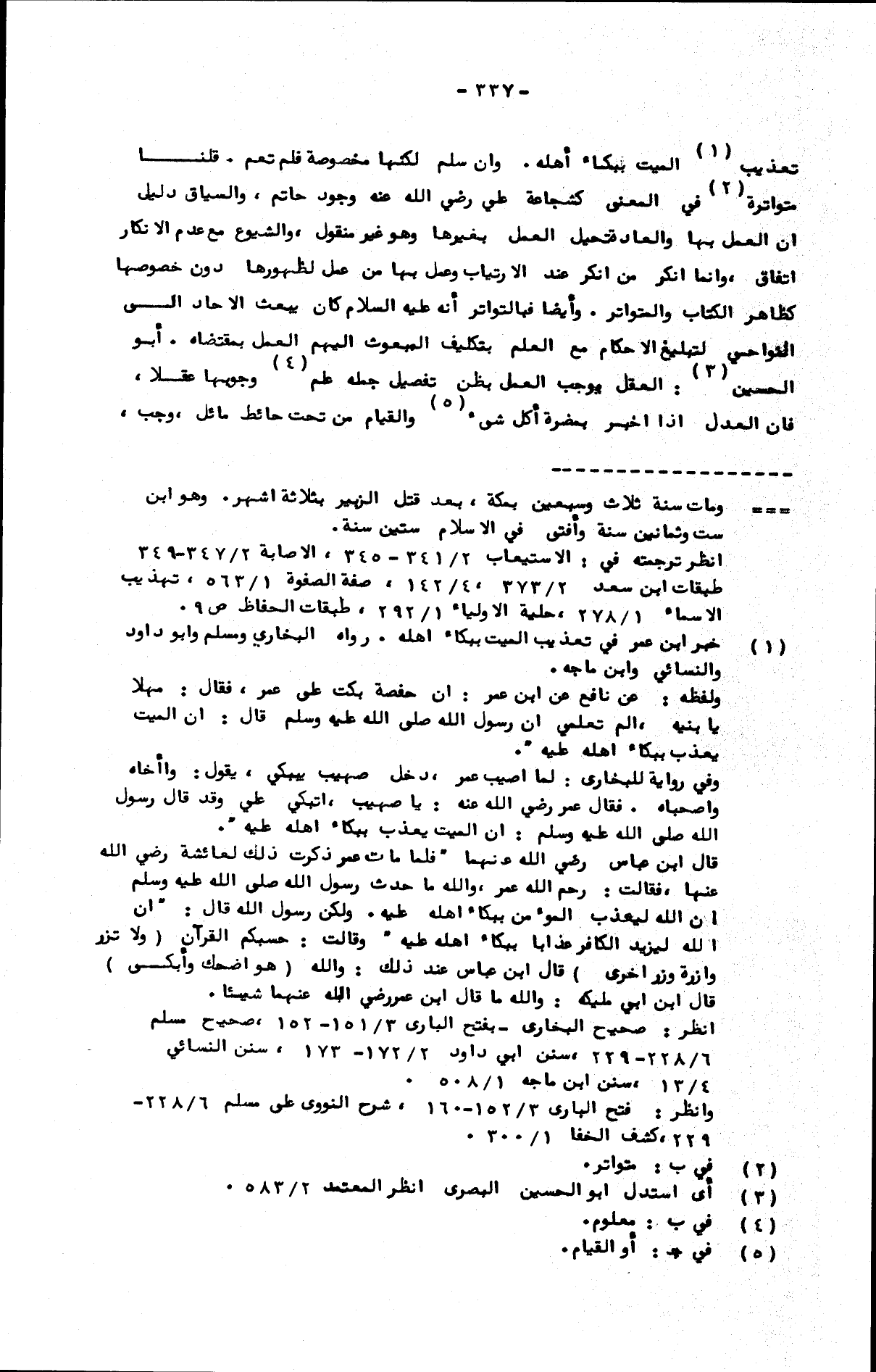 تعذيب الميت ببكاء أهله. وإن سلم لكنها مخصوصة فلم تعم. قلنا: متواترة في المعنى كشجاعة علي رضي الله عنه وجود حاتم، والسياق دليل أن العمل بها والعادة تحيل العمل بغيرها وهو غير منقول، والشيوع مع عدم الإنكار اتفاق، وإنما أنكر من أنكر عند الارتياب وعمل بها من عمل لظهورها دون خصوصها كظاهر الكتاب والمتواتر. وأيضا فبالتواتر أنه عليه السلام كان يبعث الآحاد إلى النواحي لتبليغ الأحكام مع العلم بتكليف المبعوث إليهم العمل بمقتضاه. أبو الحسين: العقل يوجب العمل بظن تفصيل جمله علم وجوبها عقلا، فإن العدل إذا أخبر بمضرة أكل شيء والقيام من تحت حائط مائل، وجب