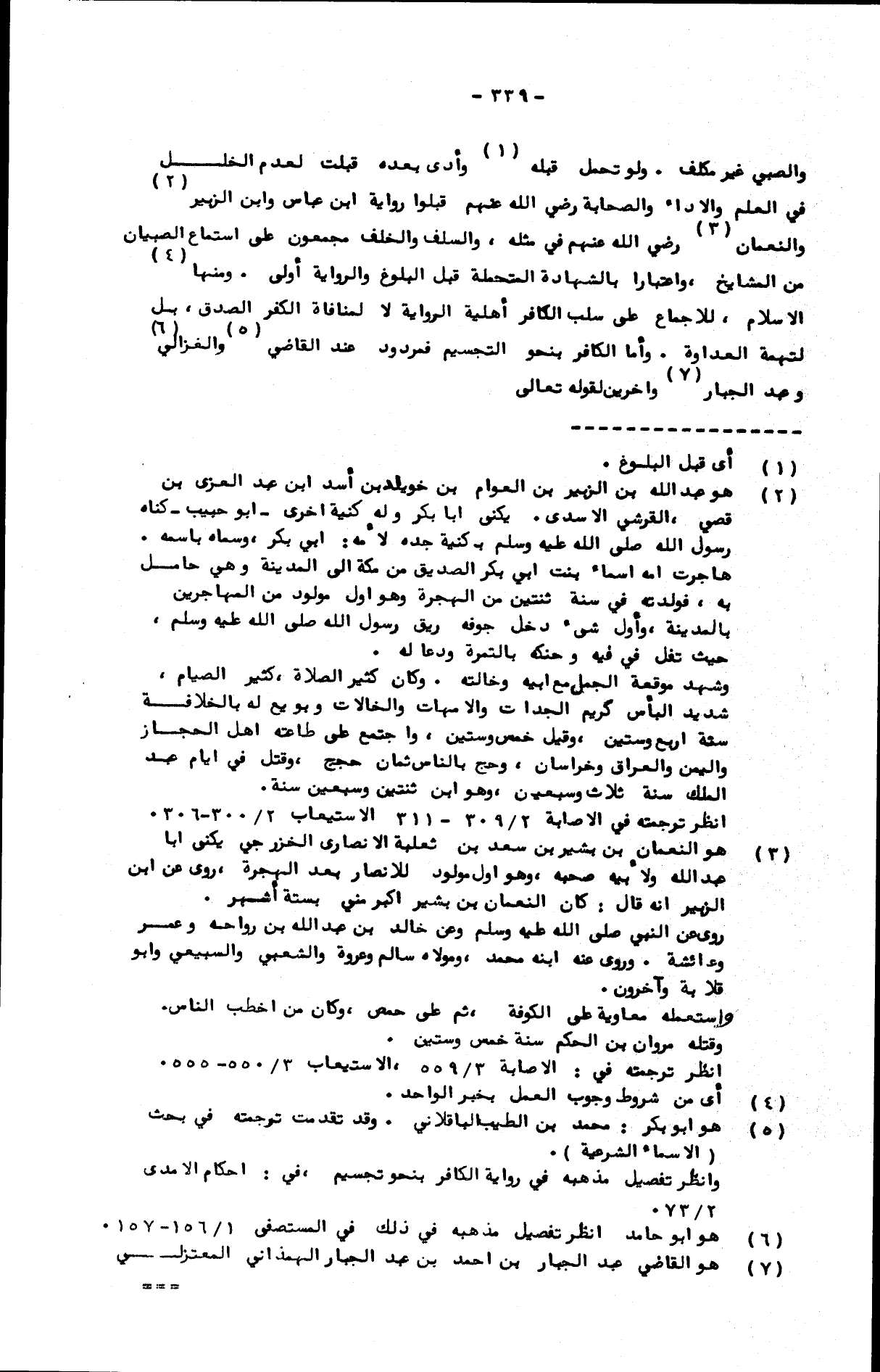 والصبي غير مكلف. ولو تحمل قبله وأدى بعده قبلت لعدم الخلل في العلم والأداء والصحابة رضي الله عنهم قبلوا رواية ابن عباس وابن الزبير والنعمان رضي الله عنهم في مثله، والسلف والخلف مجمعون على استماع الصبيان من المشايخ، واعتبارا بالشهادة المتحملة قبل البلوغ والرواية أولى. ومنها الإسلام، للإجماع على سلب الكافر أهلية الرواية لا لمنافاة الكفر الصدق، بل لتهمة العداوة. وأما الكافر بنحو التجسيم فمردود عند القاضي والغزالي وعبد الجبار وآخرين لقوله تعالى