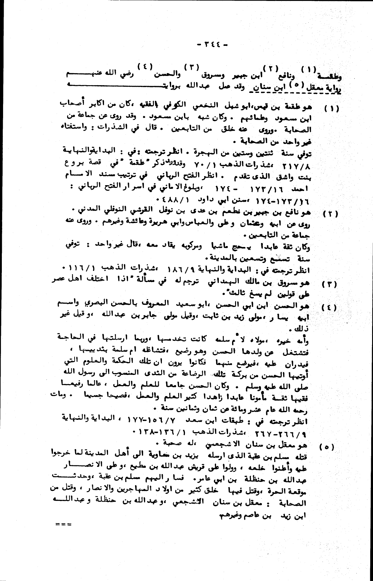 وعلقمة ونافع بن جبير ومسروق والحسن رضي الله عنهم رواية معقل بن سنان، وقد عمل عبد الله بروايته