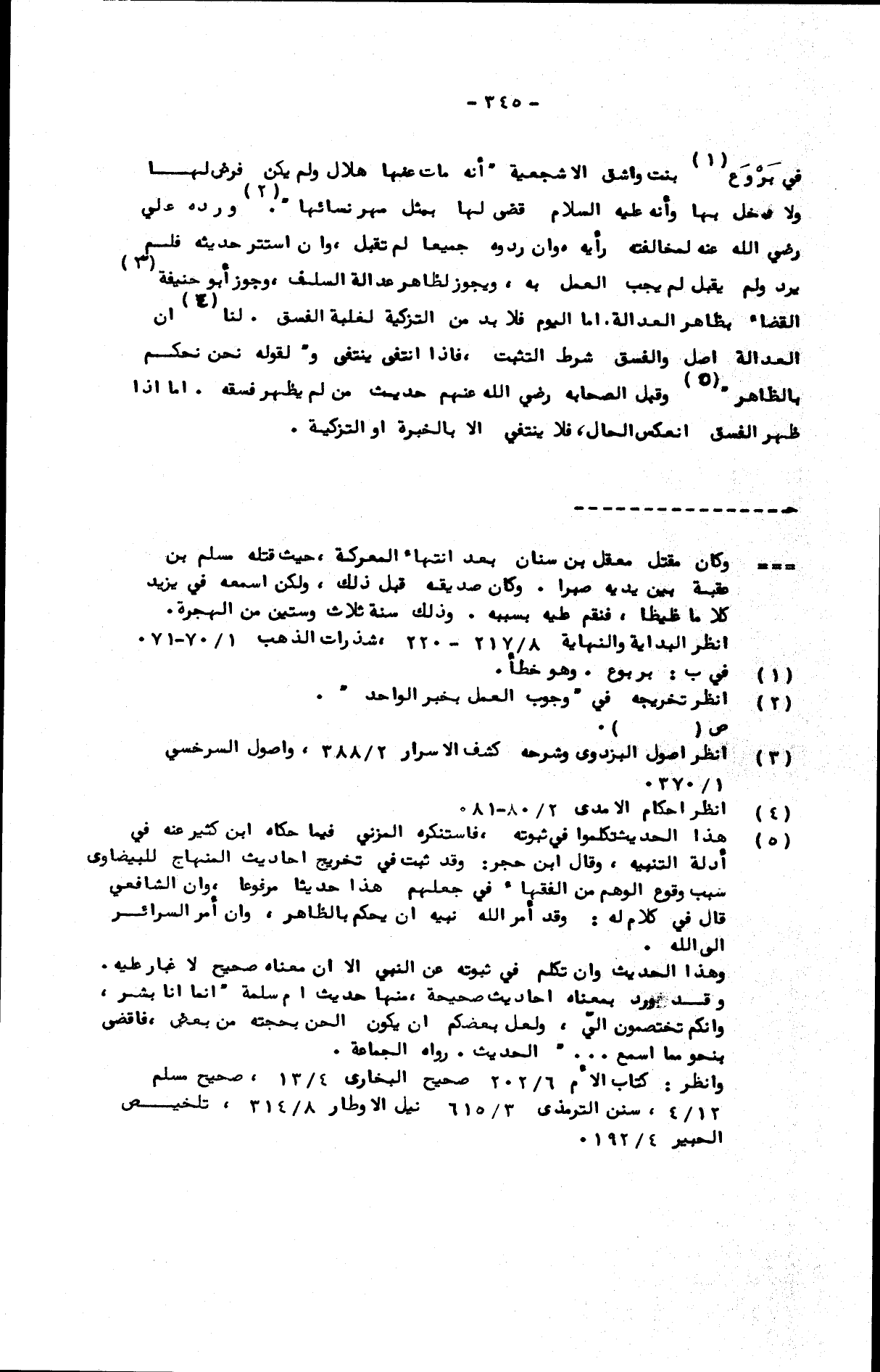 في بروع بنت واشق الأشجعية أنه مات عنها هلال ولم يكن فرض لها ولا دخل بها وأنه عليه السلام قضى لها بمثل مهر نسائها. ورده علي رضي الله عنه لمخالفته رأيه. وإن ردوه جميعا لم تقبل، وإن استتر حديثه فلم يرد ولم يقبل لم يجب العمل به، ويجوز لظاهر عدالة السلف، وجوز أبو حنيفة القضاء بظاهر العدالة. أما اليوم فلا بد من التزكية لغلبة الفسق. لنا أن العدالة أصل والفسق شرط التثبت، فإذا انتفى انتفى، ولقوله: نحن نحكم بالظاهر، وقبل الصحابة رضي الله عنهم حديث من لم يظهر فسقه. أما إذا ظهر الفسق انعكس الحال، فلا ينتفي إلا بالخبرة أو التزكية.