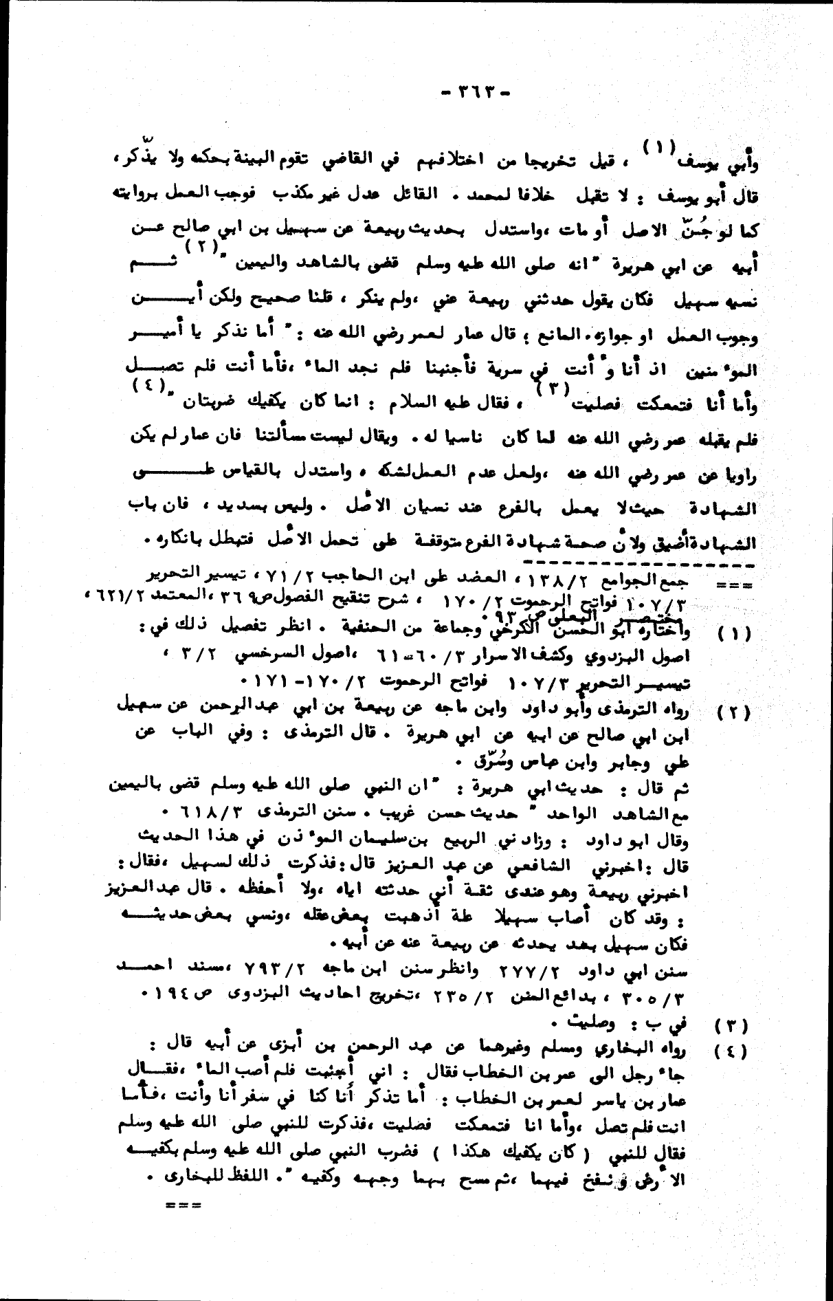 وأبي يوسف، قيل: تخريجا من اختلافهم في القاضي تقوم البينة بحكمه ولا يذكر، قال أبو يوسف: لا تقبل خلافا لمحمد. القائل عدل غير مكذب فوجب العمل بروايته كما لو جُنَّ الأصل أو مات، واستدل بحديث ربيعة عن سهيل بن أبي صالح عن أبيه عن أبي هريرة أنه صلى الله عليه وسلم قضى بالشاهد واليمين، ثم نسيه سهيل فكان يقول حدثني ربيعة عني، ولم ينكر، قلنا صحيح ولكن أين وجوب العمل أو جوازه. المانع: قال عمار لعمر رضي الله عنه: أما نذكر يا أمير المؤمنين إذ أنا وأنت في سرية فأجنبنا فلم نجد الماء، فأما أنت فلم تصل وأما أنا فتمعكت فصليت، فقال عليه السلام: إنما كان يكفيك ضربتان، فلم يقبله عمر رضي الله عنه لما كان ناسيا له. ويقال ليست مسألتنا فإن عمار لم يكن راويا عن عمر رضي الله عنه، ولعل عدم العمل لشكه، واستدل بالقياس على الشهادة حيث لا يعمل بالفرع عند نسيان الأصل. وليس بسديد، فإن باب الشهادة أضيق ولأن صحة شهادة الفرع متوقفة على تحمل الأصل فتبطل بإنكاره.