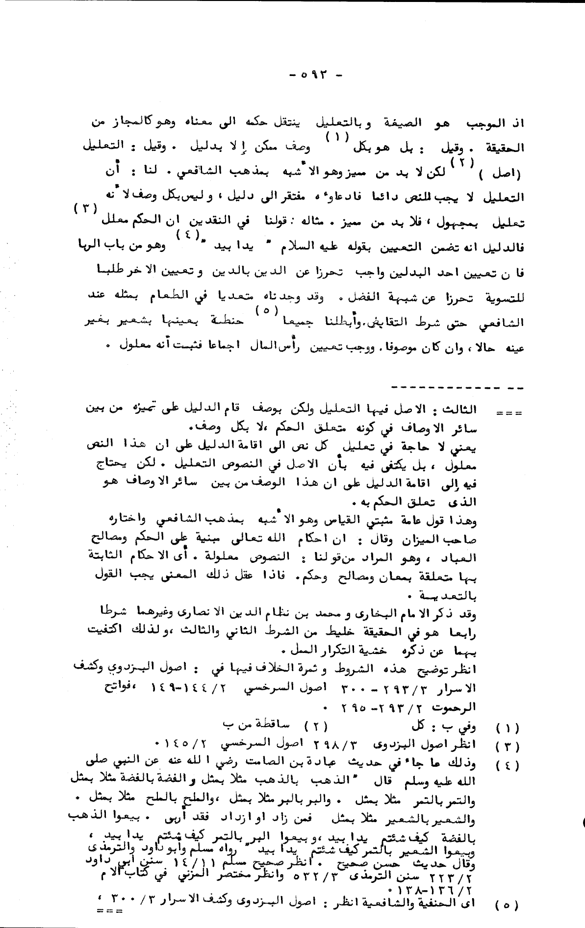 إذ الموجب هو الصيغة وبالتعلل ينتقل حكمه إلى معناه وهو كالمجاز من الحقيقة. وقيل: بل هو بكل وصف ممكن إلا بدليل. وقيل: التعليل أصل لكن لا بد من مميز وهو الأشبه بمذهب الشافعي. لنا: أن التعليل لا يجب للنص دائما فادعاؤه مفتقر إلى دليل، وليس بكل وصف لأنه تعليل بمجهول، فلا بدمن مميز. مثاله: قولنا في النقدين إن الحكم معلل فالدليل أنه تضمن التعيين بقوله عليه السلام "يدا بيد" وهو من باب الربا فإن تعيين أحد البدلين واجب تحرزا عن الدين بالدين وتعيين الآخر طلبا للتسوية تحرزا عن شبهة الفضل. وقد وجدناه متعديا في الطعام بمثله عند الشافعي حتى شرط التقابض. وأبطلنا جميعا حنطة بعينها بشعير بغير عينه حالا، وإن كان موصوفا، ووجب تعيين رأس المال إجماعا فثبت أنه معلول.