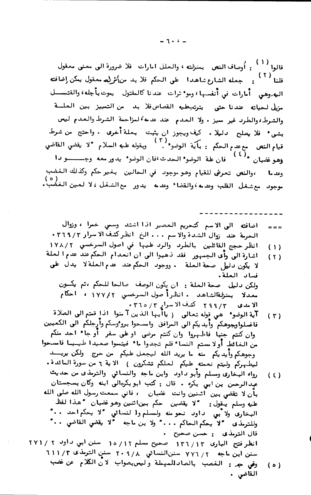 قالوا: أوصاف النص بمنزلته، والعلل أمارات فلا ضرورة إلى معنى معقول قلنا: جعله الشارع شاهدا على الحكم فلا بد من أثر له معقول يمكن إضافته إليه. وهي أمارات في أنفسها، ومؤثرات عندنا كالمقتول يموت بأجله، والقتل مزيل لحياته عندنا حتى يترتب عليه القصاص فلا بد من التمييز بين العلة والشرط، والطرد غير مميز. ولا العدم عند عدمه، لمزاحمة الشرط والعدم ليس بشيء فلا يصلح دليلا. كيف ويجوز أن يثبت بعلة أخرى. واحتج من شرط قيام النص مع عدم الحكم: بآية الوضوء. وبقوله عليه السلام "لا يقضي القاضي وهو غضبان" فإن علة الوضوء الحدث، فإن الوضوء يدور معه وجودا وعدما، والنص تعرض للقيام وهو موجود في الحالين بغير حكم وكذلك الغضب موجود مع شغل القلب وعدمه، والقضاء وعدمه يدور مع الشغل، لا لعين الغضب.