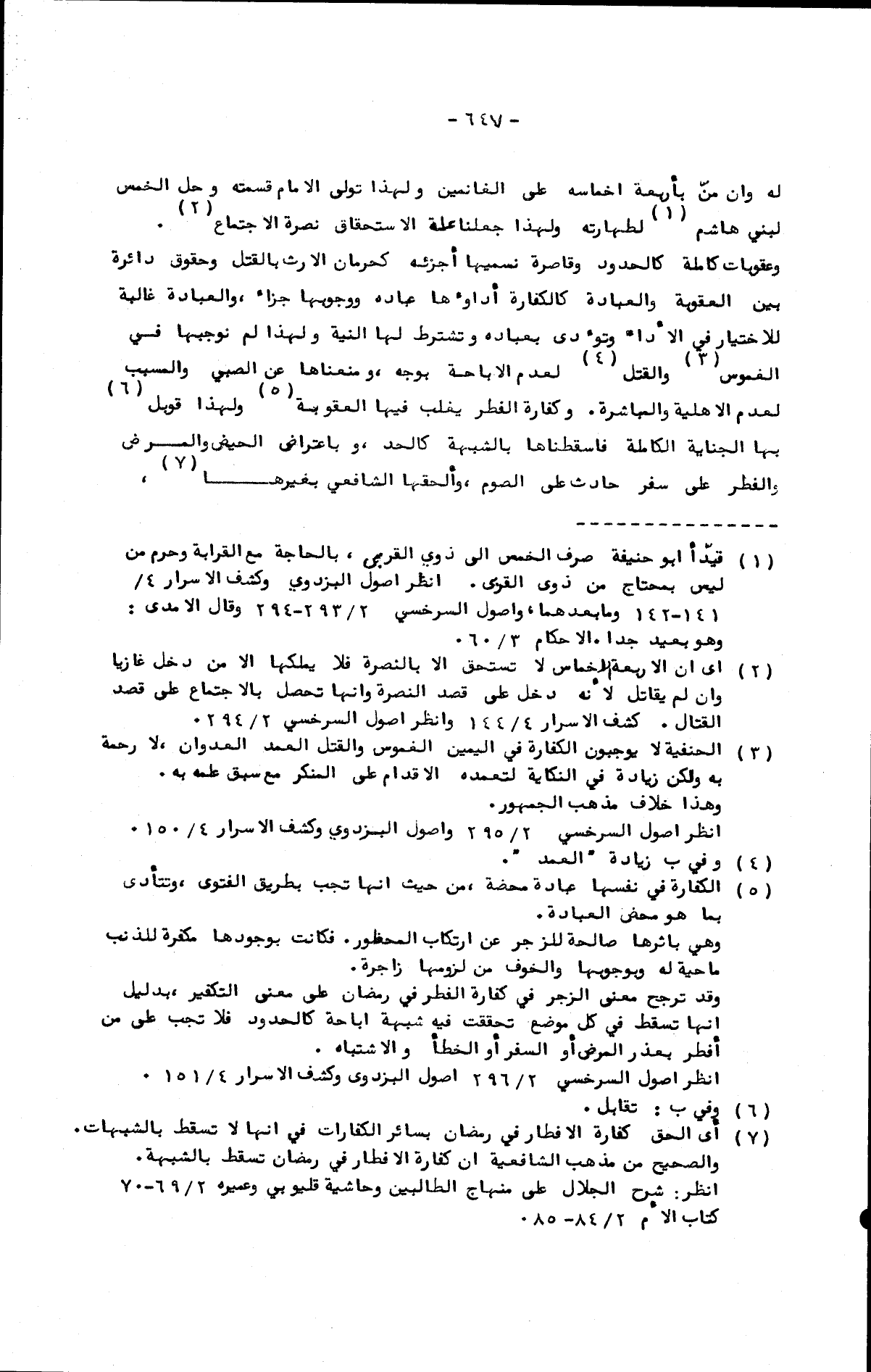 وعقوبات كاملة كالحدود وقاصرة نسميها أجزئة كحرمان الإرث بالقتل وحقوق دائرة بين العقوبة والعبادة كالكفارة أداؤها عبادة ووجوبها جزاء، والعبادة غالبة للاختيار في الأداء وتؤدى بعبادة وتشترط لها النية ولهذا لم نوجبها في الغموس والقتل لعدم الإباحة بوجه، ومنعناها عن الصبي والمسبب لعدم الأهلية والمباشرة. وكفارة الفطر يغلب فيها العقوبة ولهذا قوبل بها الجناية الكاملة فأسقطناها بالشبهة كالحد، وباعتراض الحيض والمرض والفطر على سفر حادث على الصوم، وألحقها الشافعي بغيرها،
