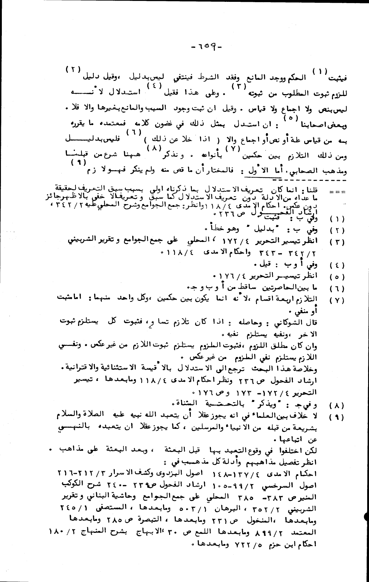 فيثبت الحكم ووجد المانع وفقد الشرط فينتفي ليس بدليل، وقيل دليل للزوم ثبوت المطلوب من ثبوته. وعلى هذا فقيل استدلال لأنه ليس بنص ولا إجماع ولا قياس. وقيل: إن ثبت وجود السبب والمانع بغيرها وإلا فلا. وبعض أصحابنا: إن استدل بمثل ذلك في غضون كلامه فمعتمده ما يقرره به من قياس علة أو نص أو إجماع وإلا (إذا خلا عن ذلك) فليس بدليل ومن ذلك التلازم بين حكمين بأنواعه. ونذكر ههنا شرع من قبلنا ومذهب الصحابي. أما الأول: فالمختار أن ما قص منه ولم ينكر فهو لازم