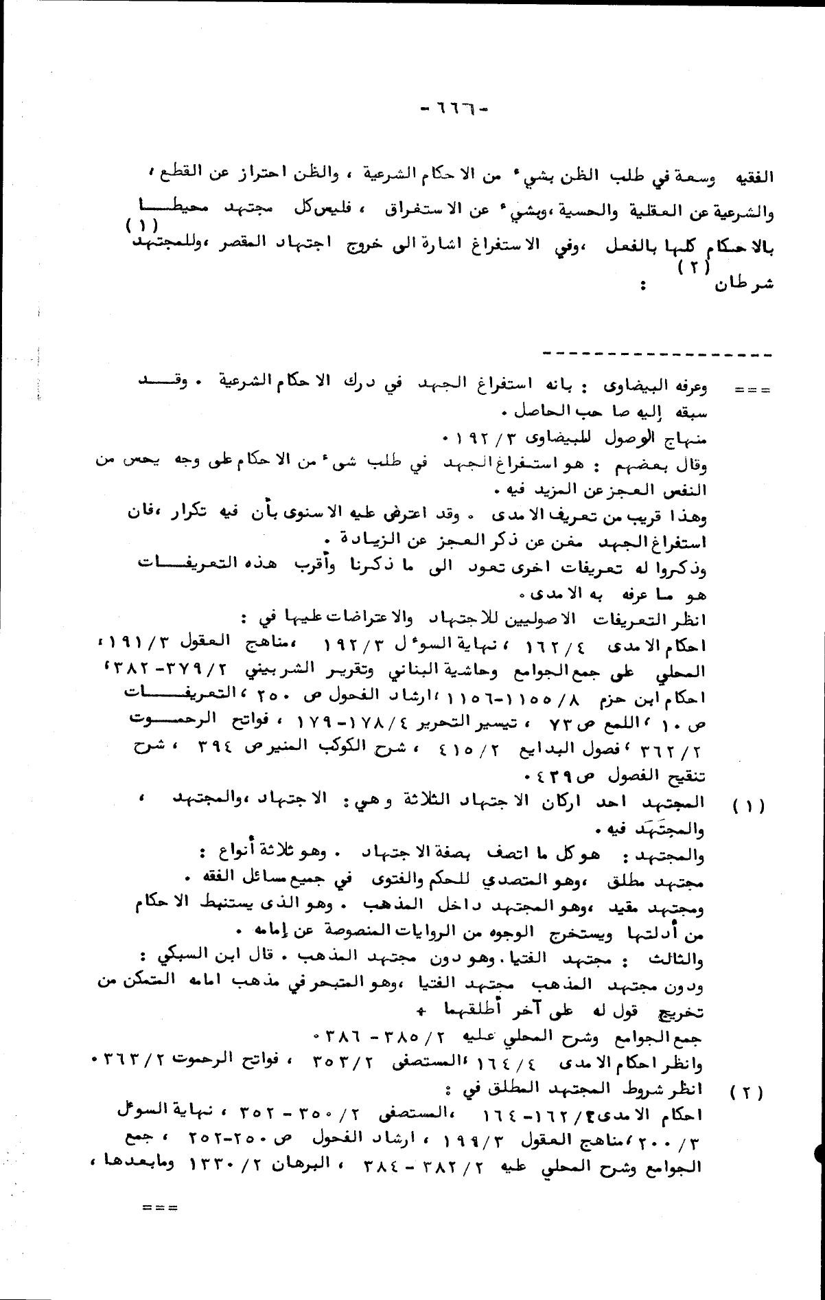 الفقيه وسعه في طلب الظن بشيء من الأحكام الشرعية، والظن احتراز عن القطع والشرعية عن العقلية والحسية، وبشيء عن الاستغراق، فليس كل مجتهد محيطا بالأحكام كلها بالفعل، وفي الاسفتراغ إشارة إلى خروج المقصر، وللمجتهد شرطان: