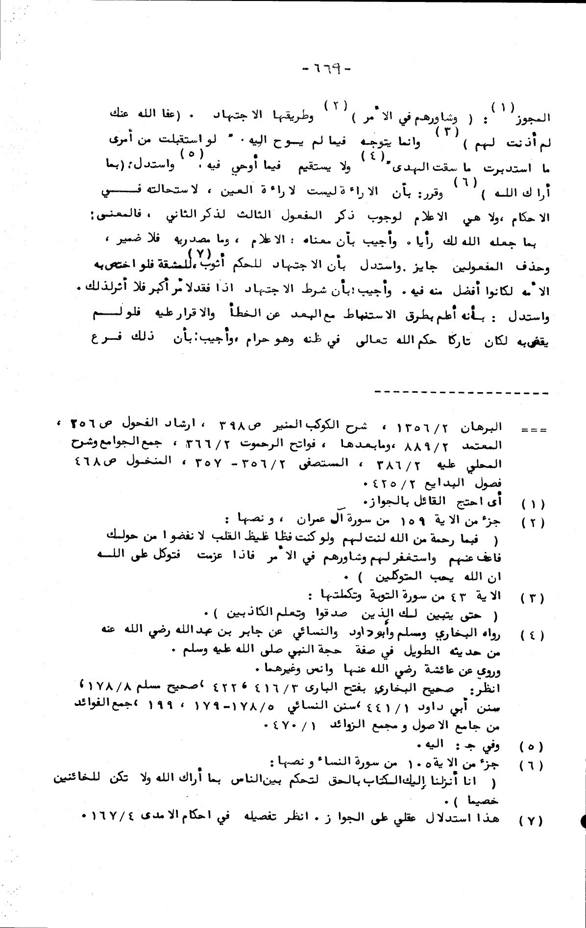 المجوز: {وشاورهم في الأمر} وطريقها الاجتهاد. {عفا الله عنك لم أذنت لهم} وإنما يتوجه فيما لم يوح إليه. "لو استقبلت من أمري ما استدبرت ما سقت الهدي" ولا يستقيم فيما أوحي فيه. واستدل: {بما أراك الله} وقرر: بأن الإراءة ليست لإراءة العين، لاستحالته في الأحكام، ولا هي الإعلام لوجوب ذكر المفعول الثالث لذكر الثاني، فالمعنى: بما جعله الله لك رأيا. وأجيب بأن معناه: الإعلام، وما مصدرية فلا ضمير، وحذف المفعولين جايز. واستدل بأن الاجتهاد للحكم أثوب، للمشقة فلو اختص به الأمة لكانوا أفضل منه فيه. وأجيب: بأن شرط الاجتهاد إذا فقد لأمر أكبر فلا أثر لذلك. واستدل: بأنه أعلم بطرق الاستنباط مع البعد عن الخطأ والإقرار عليه فلو لم يقض به لكان تاركا حكم الله تعالى في ظنه وهو حرام، وأجيب: بأن ذلك فرع