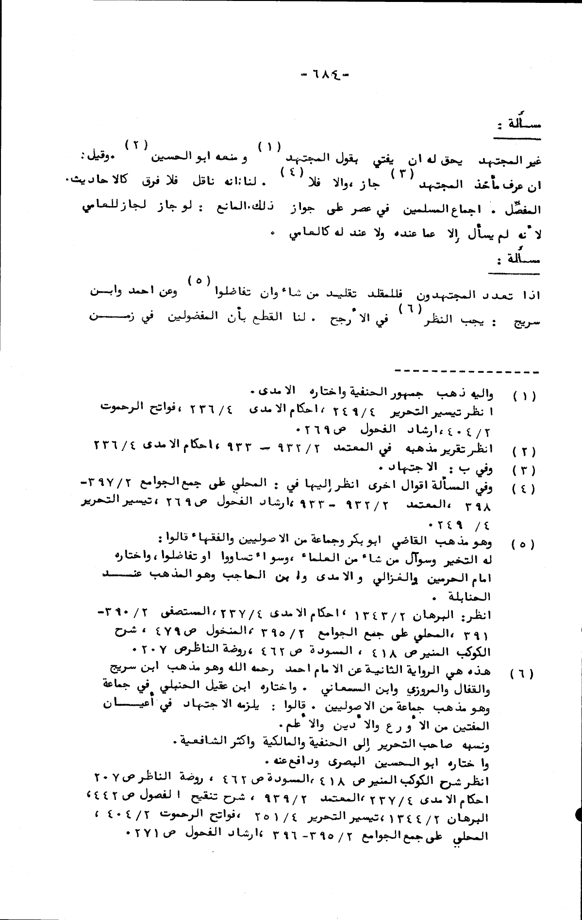 غير المجتهد يحق له أن يفتي بقول المجتهد ومنعه أبو الحسين. وقيل: إن عرف مأخذ المجتهد جاز، وإلا فلا. لنا: أنه ناقل فلا فرق كالأحاديث. المفصِّل: إجماع المسلمين في عصر على جواز ذلك. المانع: لو جاز لجاز للعامي لأنه لم يسأل إلا عما عنده ولا عند له كالعامي.