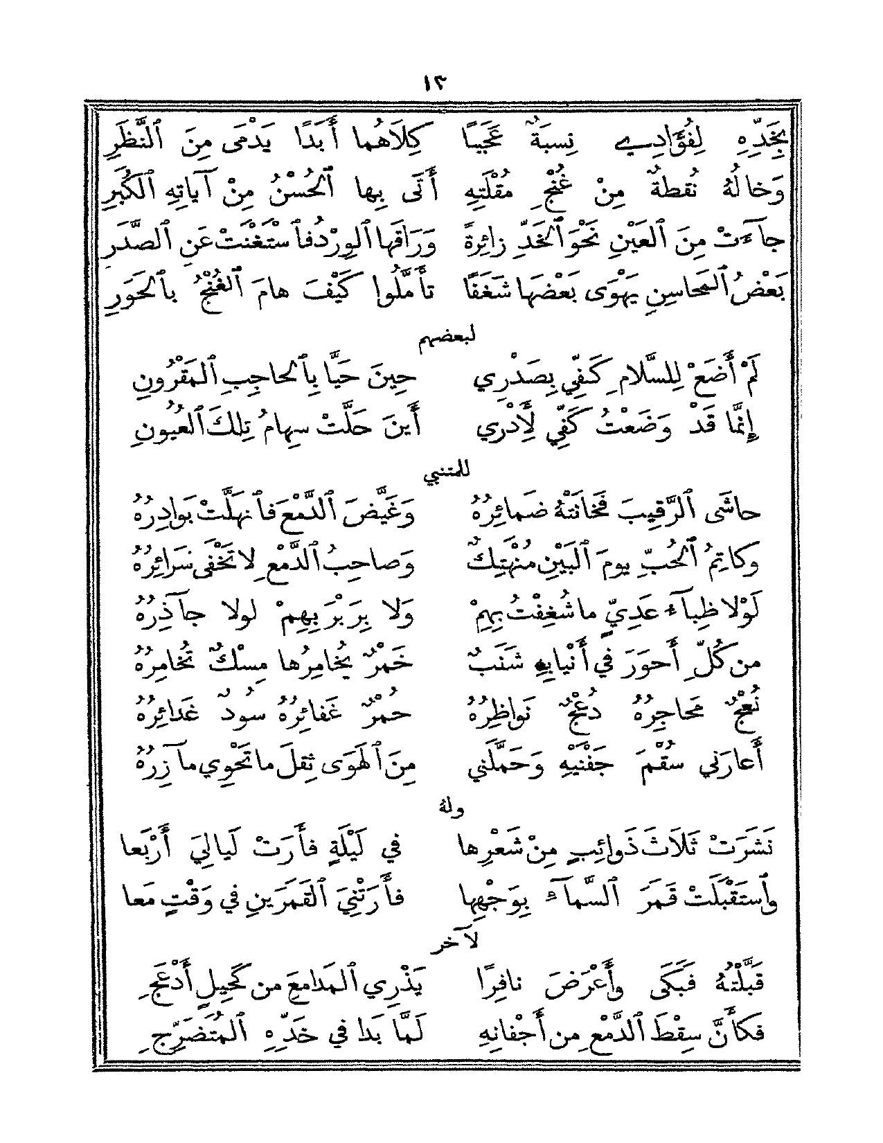 بخده لفؤادي نسبة عجباً ... كلاهما أبداً يدمى من النظر