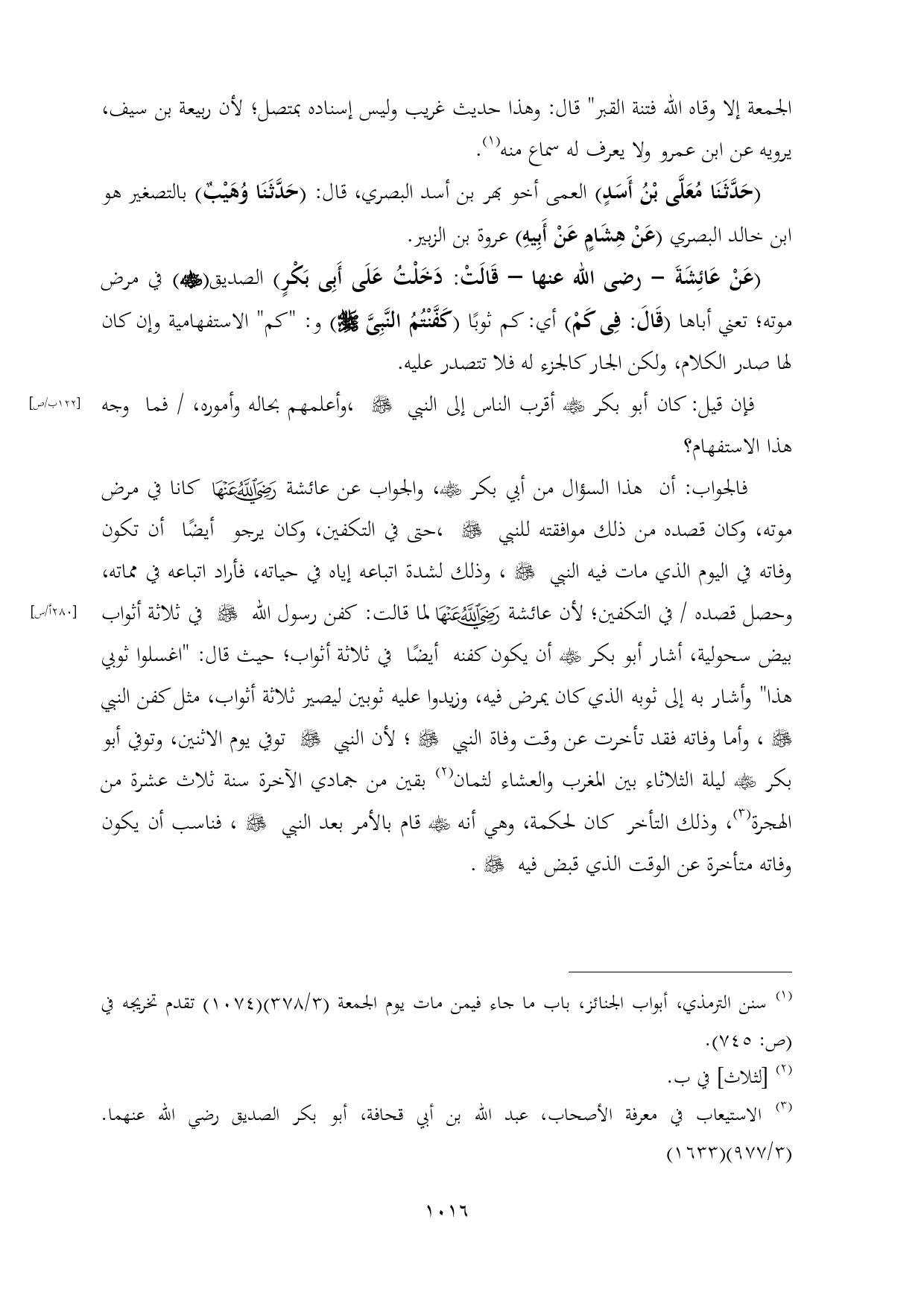 (¬٣) الاستيعاب في معرفة الأصحاب، عبد الله بن أبي قحافة، أبو بكر الصديق رضي الله عنهما. (٣/ ٩٧٧) (١٦٣٣)