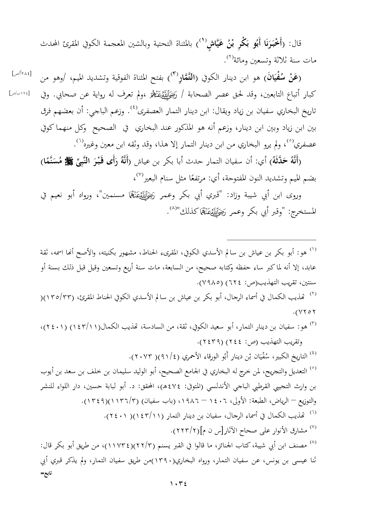 (¬٢) تهذيب الكمال في أسماء الرجال، أبو بكر بن عياش بن سالم الأسدي الكوفي الحناط المقرئ، (٣٣/ ١٣٥) (٧٢٥٢).