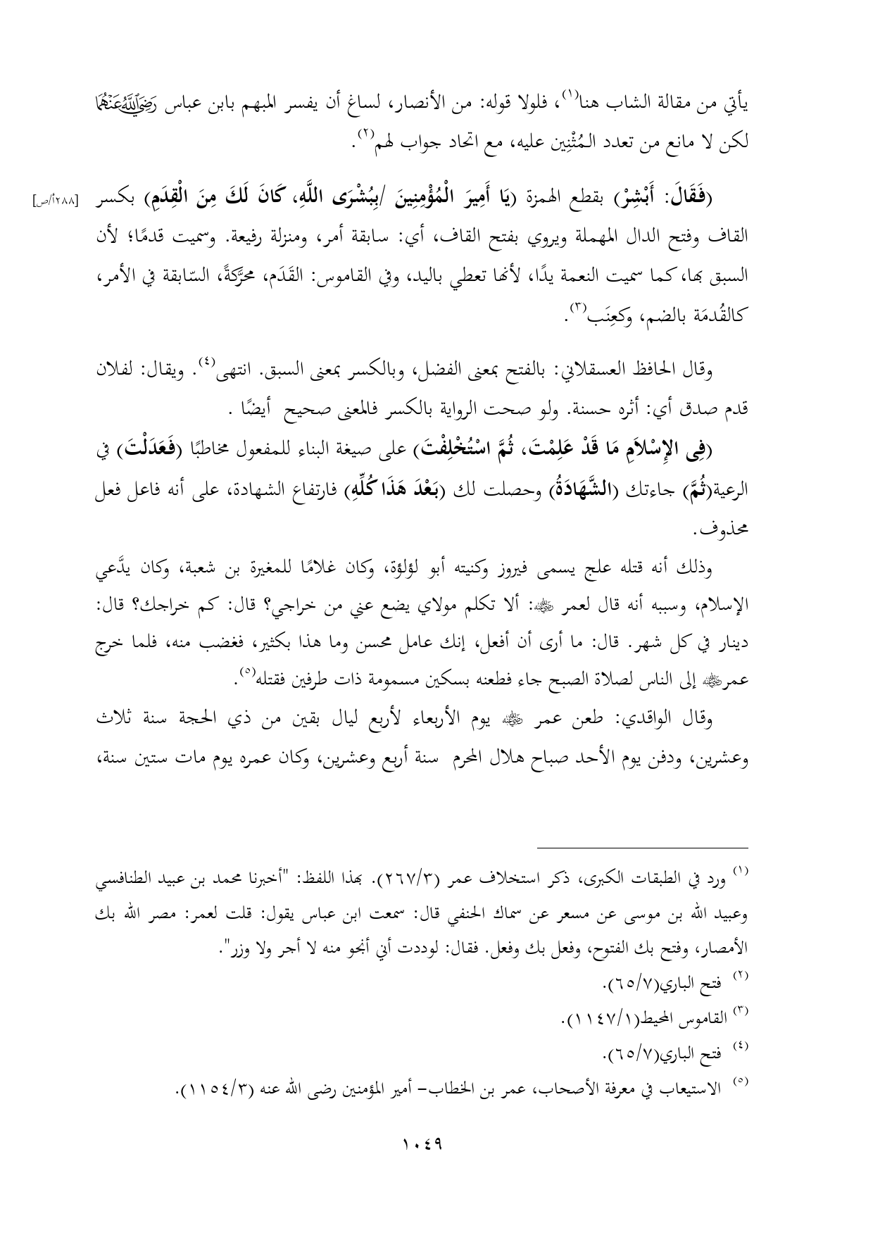 (¬٥) الاستيعاب في معرفة الأصحاب، عمر بن الخطاب- أمير المؤمنين رضى الله عنه (٣/ ١١٥٤).
