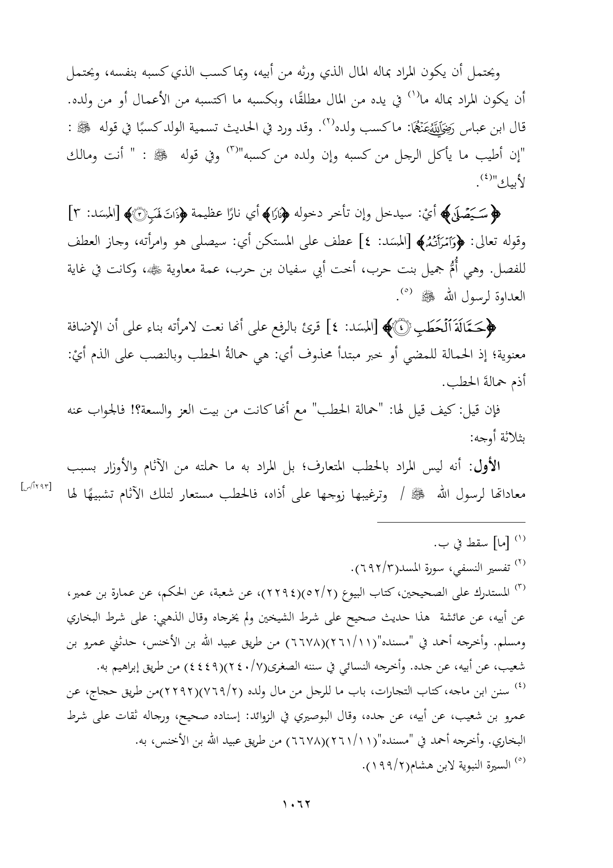 (¬٢) تفسير النسفي، سورة المسد (٣/ ٦٩٢).