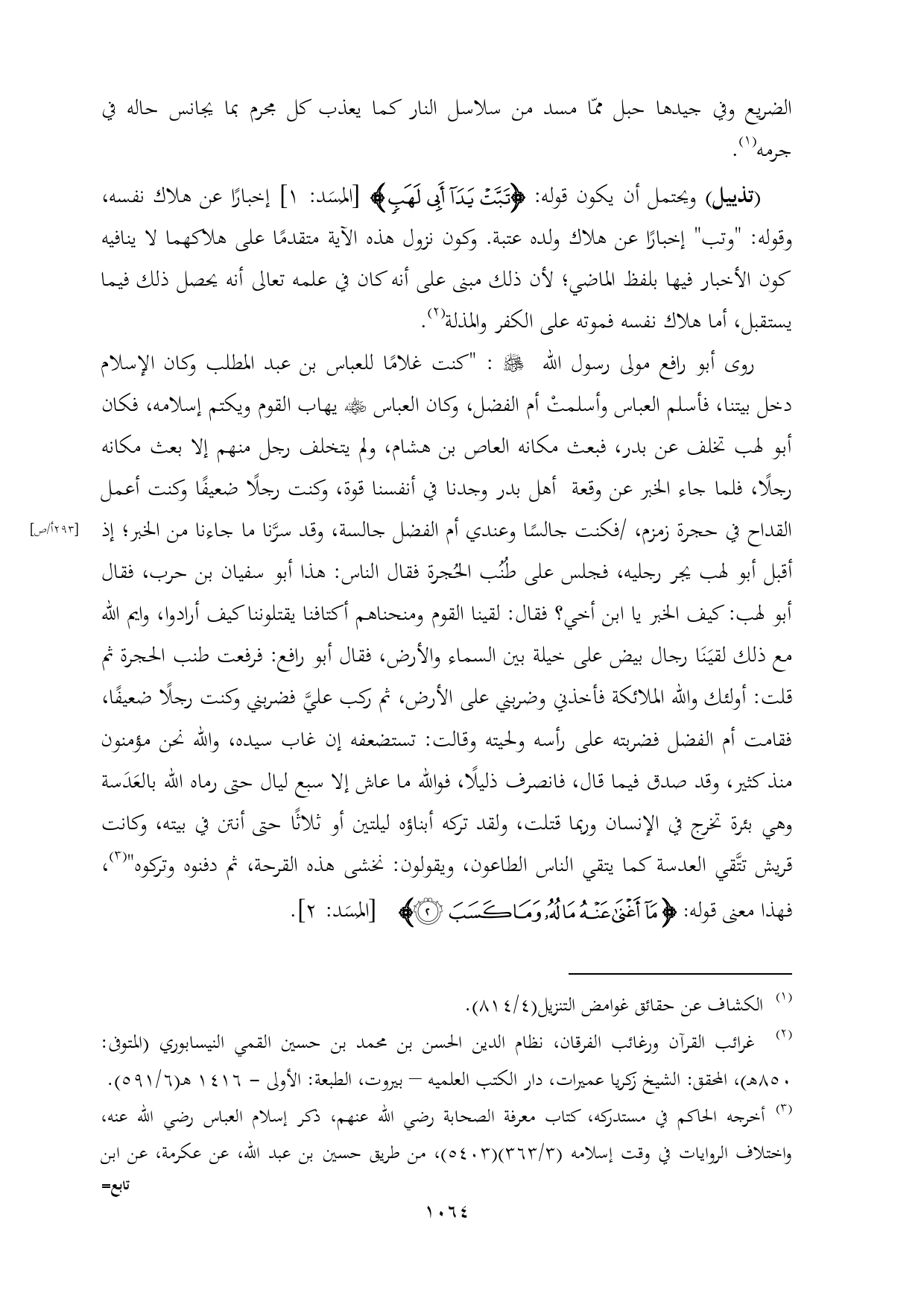 (¬٢) غرائب القرآن ورغائب الفرقان، نظام الدين الحسن بن محمد بن حسين القمي النيسابوري (المتوفى: ٨٥٠ هـ)، المحقق: الشيخ زكريا عميرات، دار الكتب العلميه - بيروت، الطبعة: الأولى - ١٤١٦ هـ (٦/ ٥٩١).