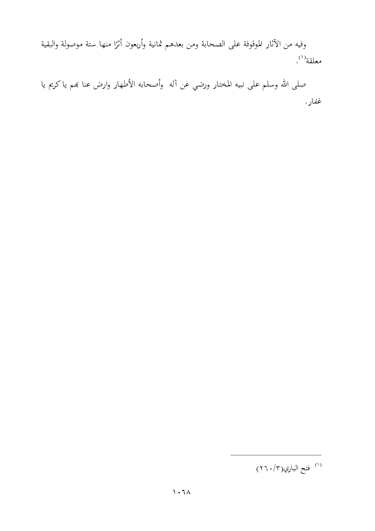وفيه من الآثار الموقوفة على الصحابة ومن بعدهم ثمانية وأربعون أثرًا منها ستة موصولة والبقية معلقة (¬١).