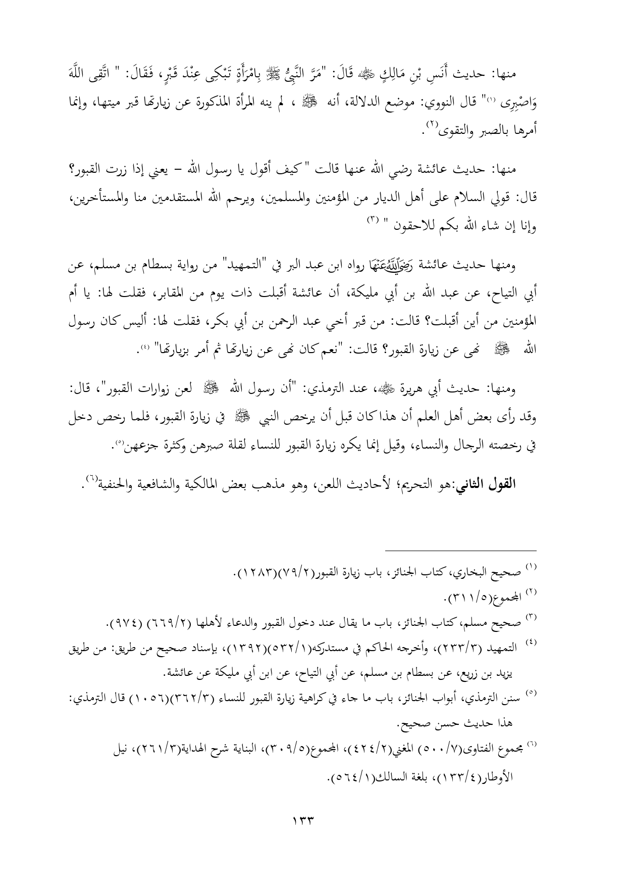 (¬٥) سنن الترمذي، أبواب الجنائز، باب ما جاء في كراهية زيارة القبور للنساء (٣/ ٣٦٢) (١٠٥٦) قال الترمذي: هذا حديث حسن صحيح.